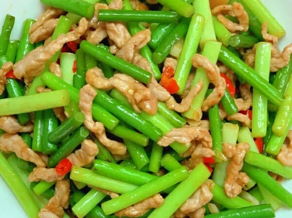 1、瘦肉清洗干净切成丝,加入生抽、淀粉、食用油,抓拌均匀腌制十分钟。蒜苔清洗干净切成小段。