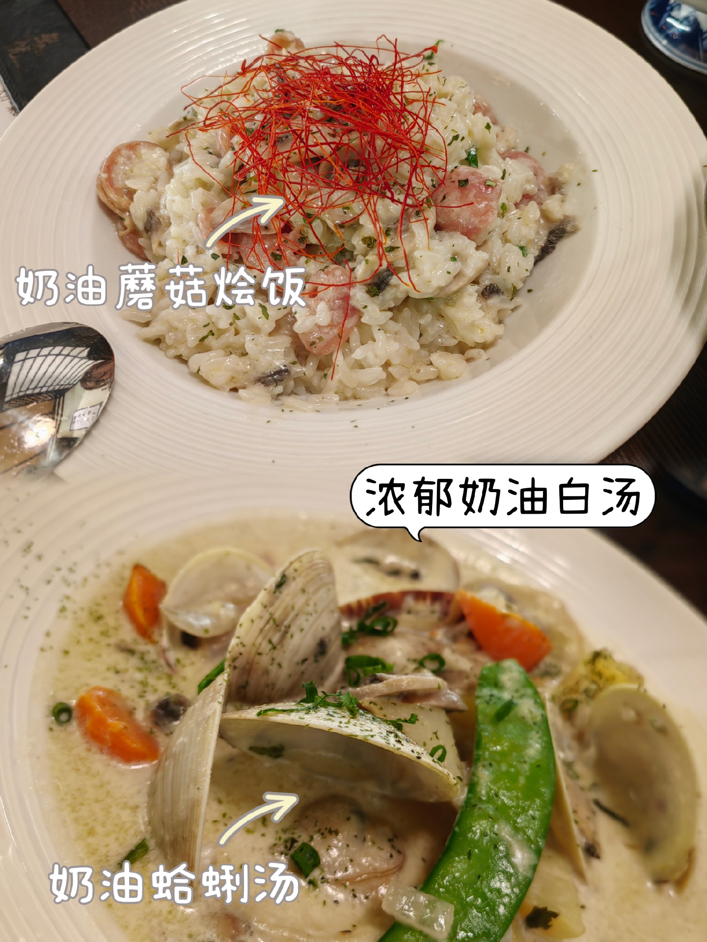 比较意外的是,除了碳烤串烧,像奶油蘑菇烩饭和奶油蛤蜊汤这种意餐居然也相当好吃,奶油白汤非常浓郁 ,味道完全有炖进去所以很是浓厚的口感🍲🍲店家还有赠送熬的姜汤驱寒也是很贴心的✨餐后还有赠送的果冻作为甜品哦- ̗̀(๑ᵔ⌔ᵔ๑)