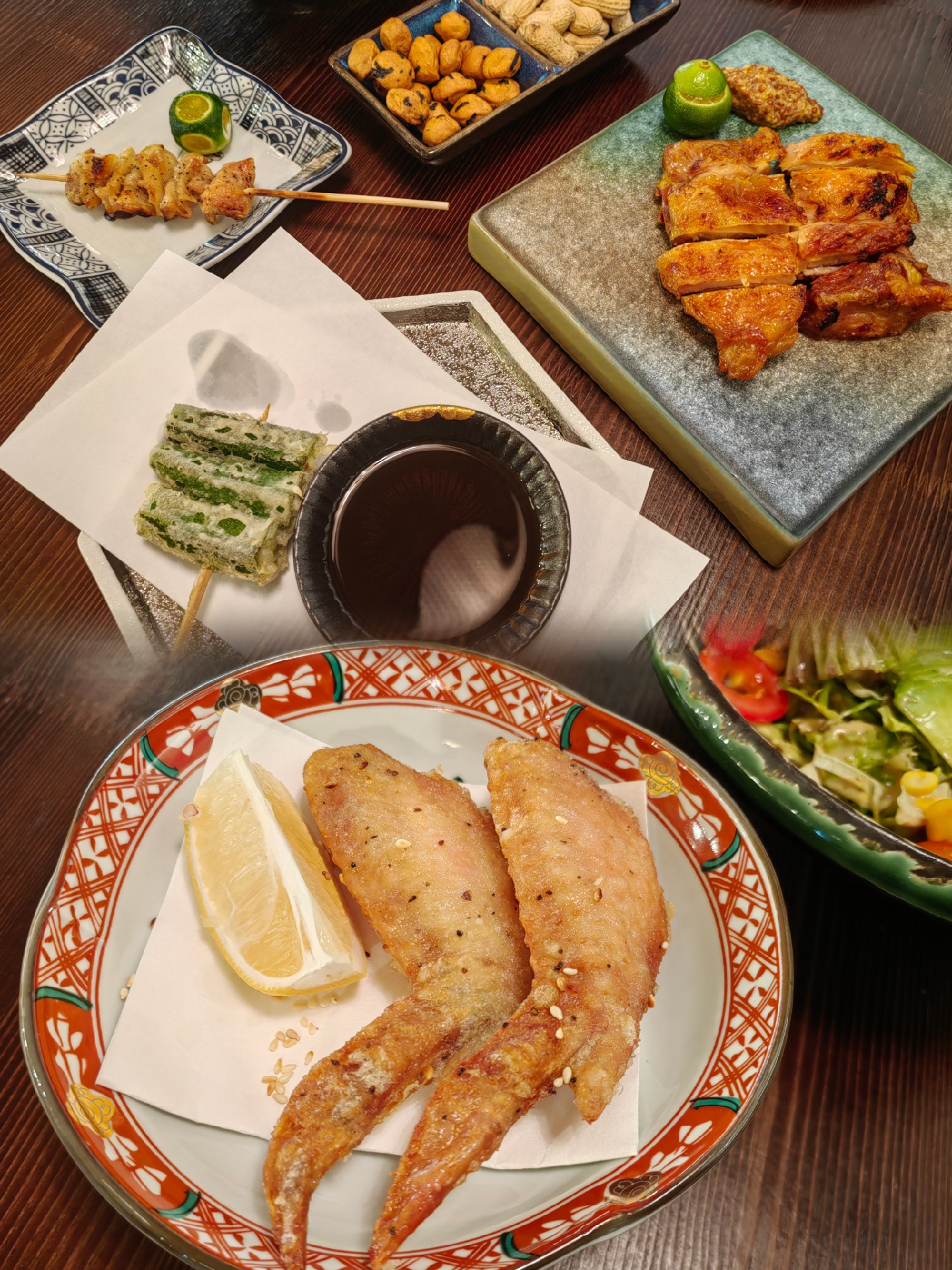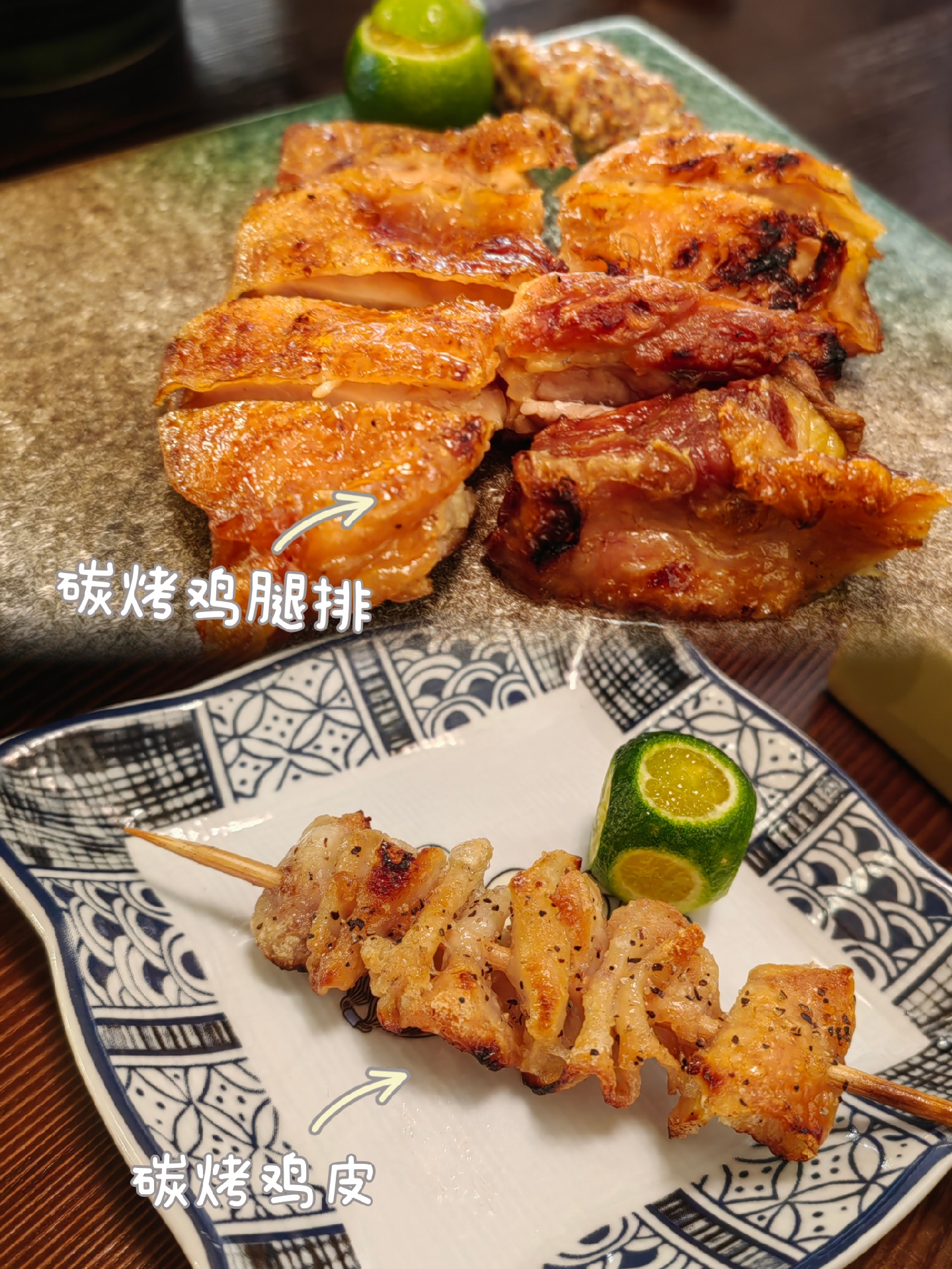 烧鸟最爱的是烤鸡皮和鸡翅,外皮比较焦脆特别香搭配生啤🍺直呼过瘾~(记得挤上柠檬汁解腻)柠檬居然还特意切成了方形有点意思~