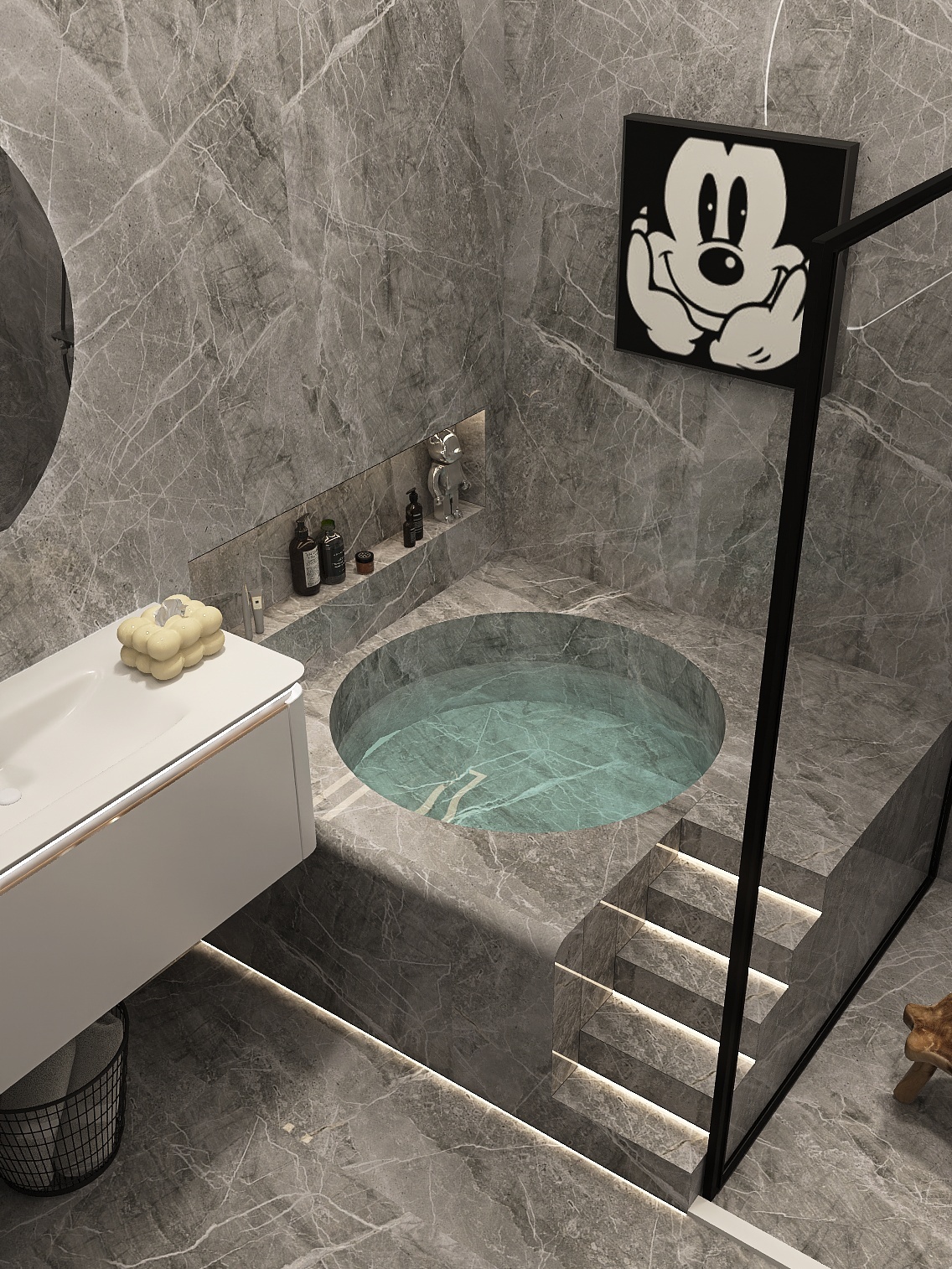 ▲这样自带纹理的深灰大理石浴室,不仅风格独特,实用性也很强👍
