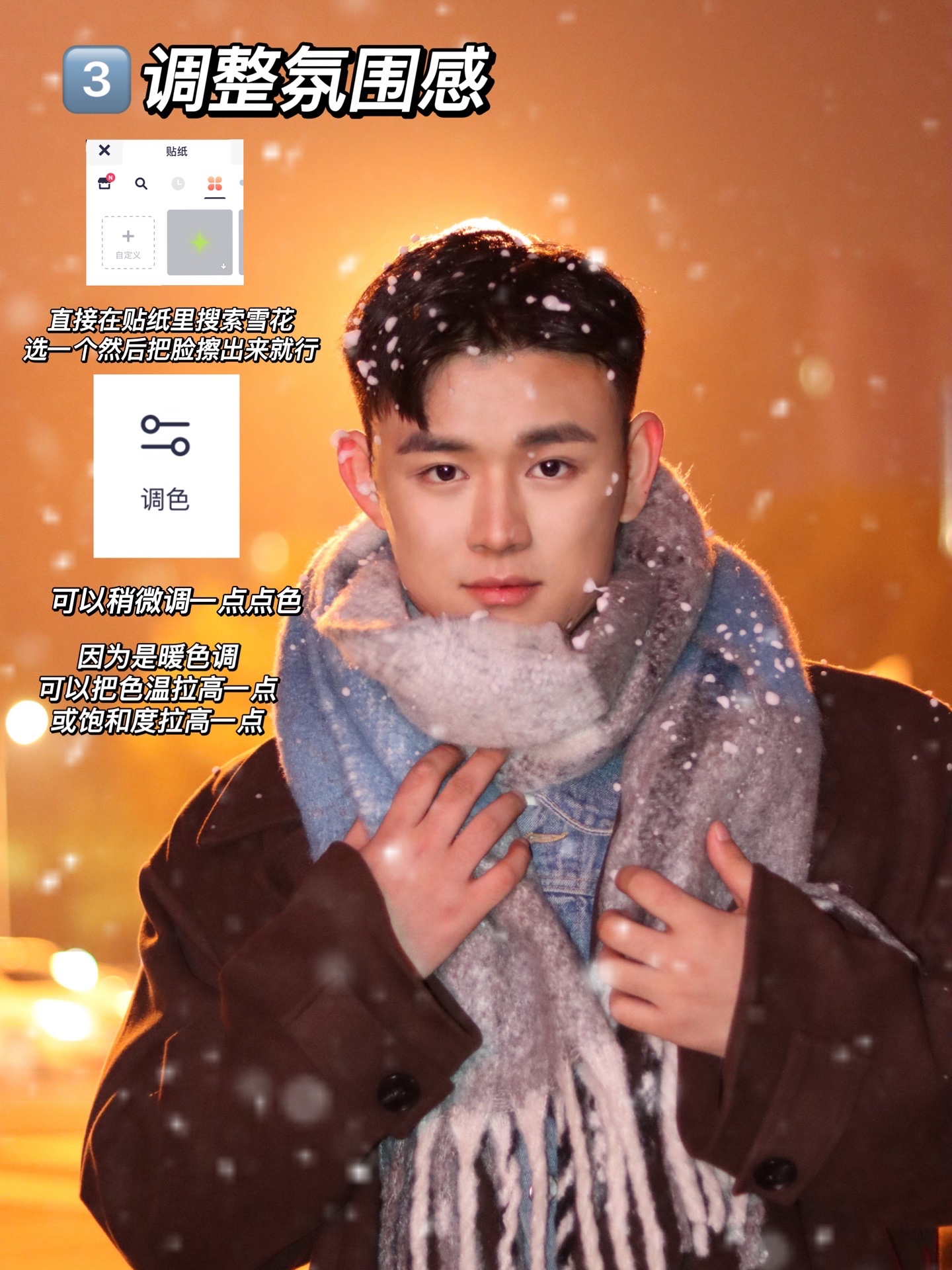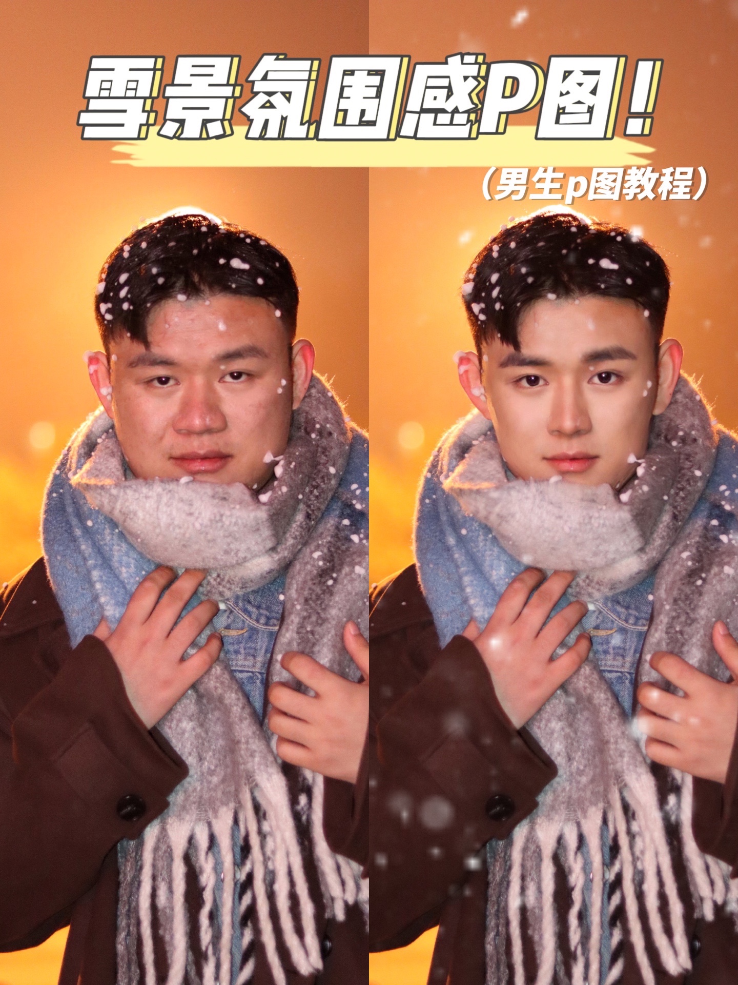 标题:男生雪景氛围感拍照P图?