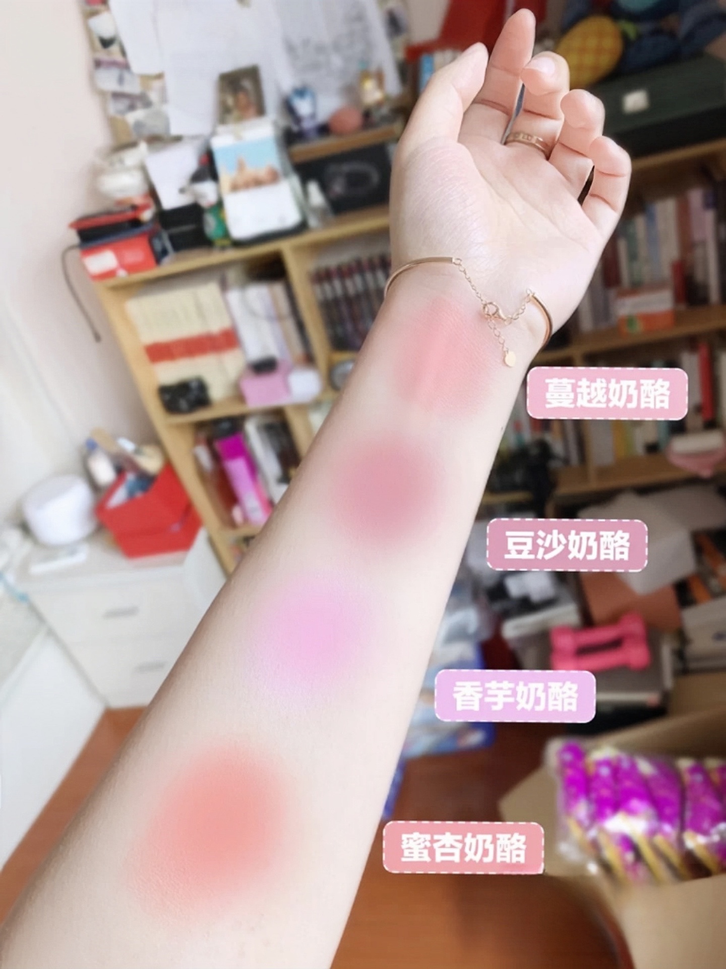 小奥汀奶酪腮红试色合集|新色真的好显白 外包装的植绒的,摸上去好苏福~
