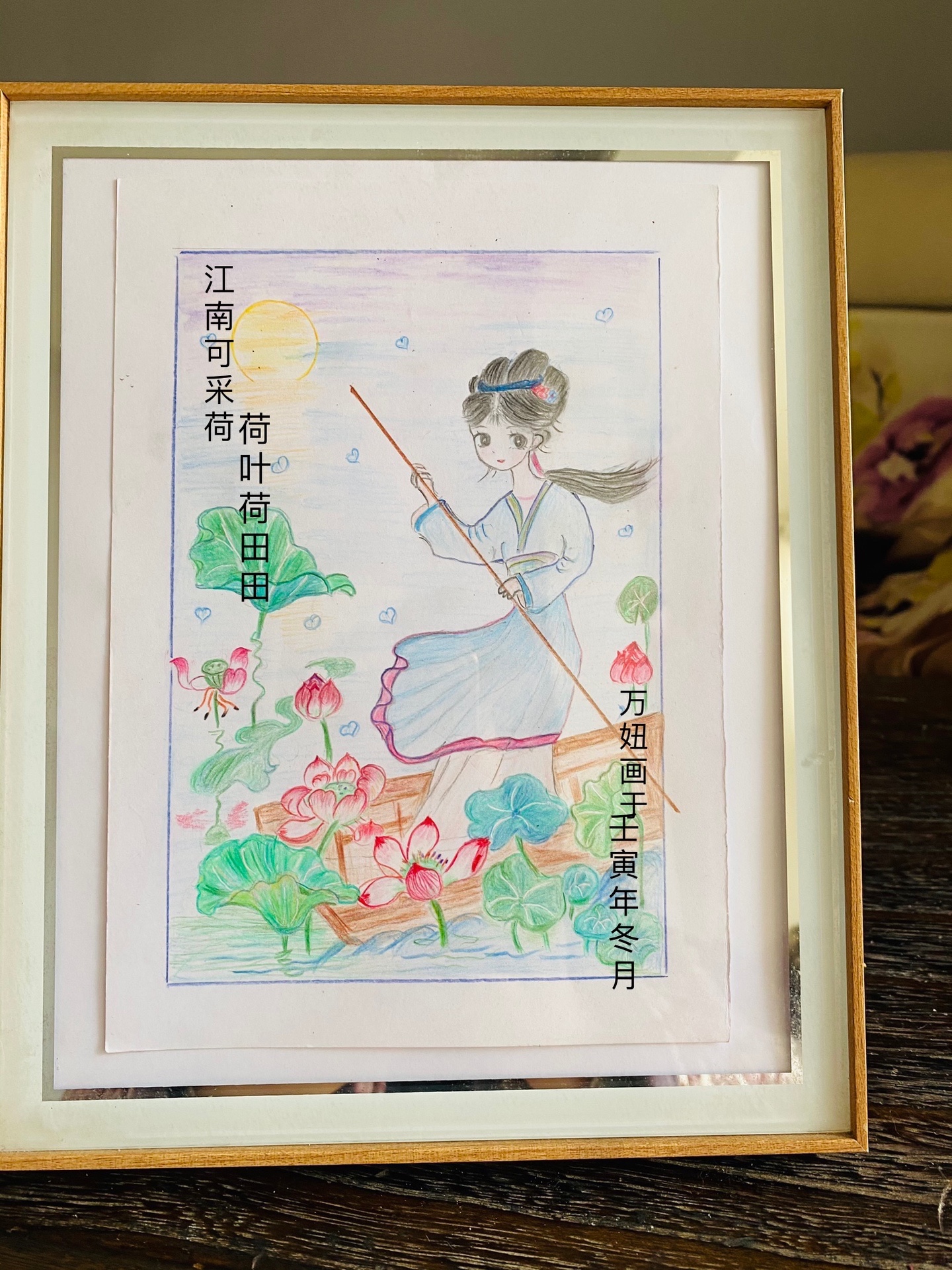 分享图片:“越女采莲秋水畔,窄袖轻罗,暗露双金钏,...........”