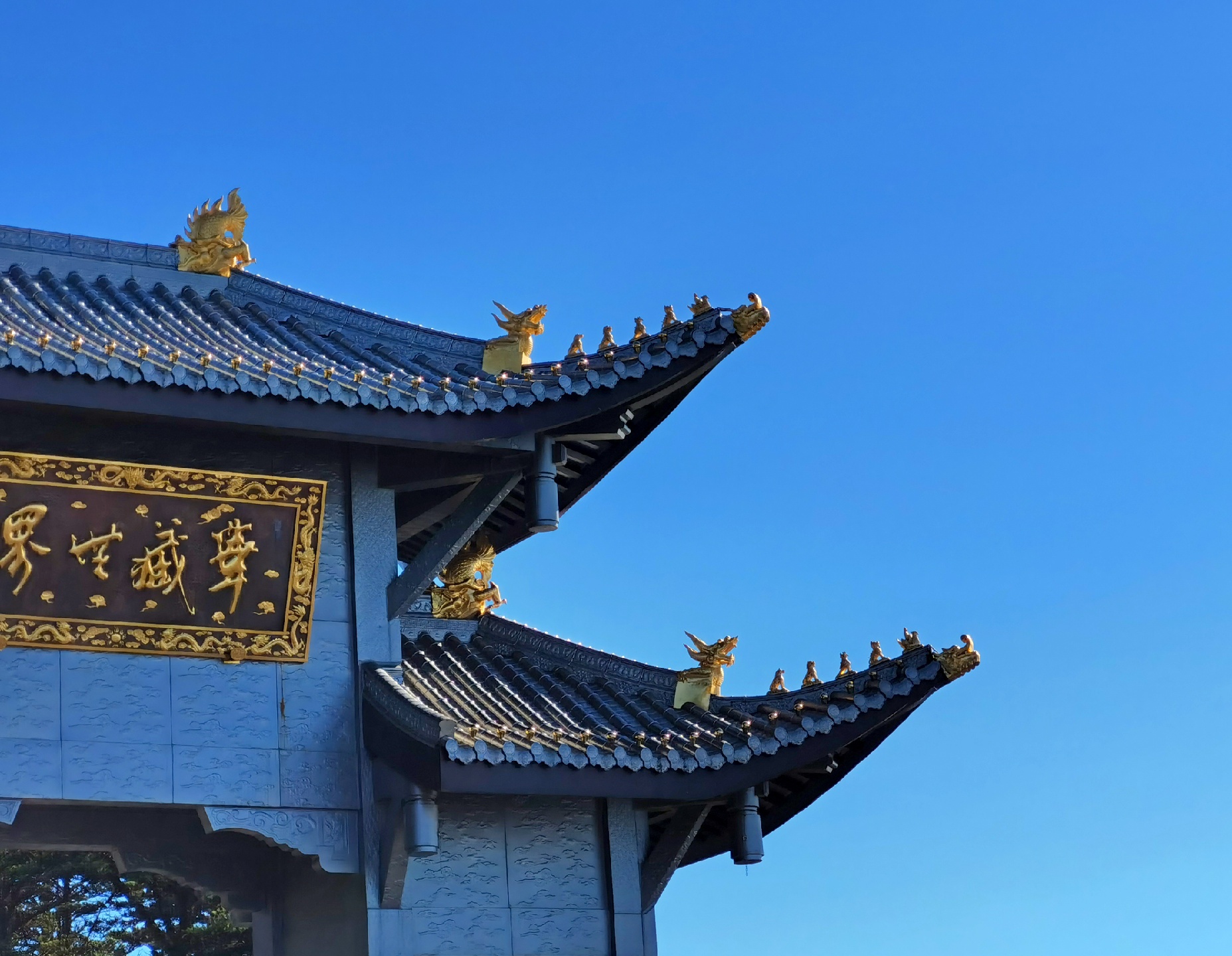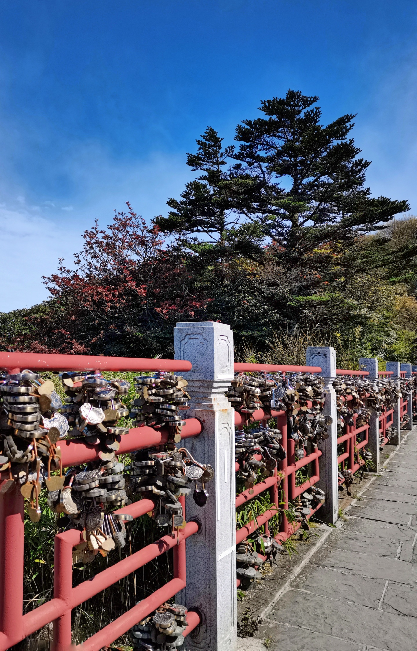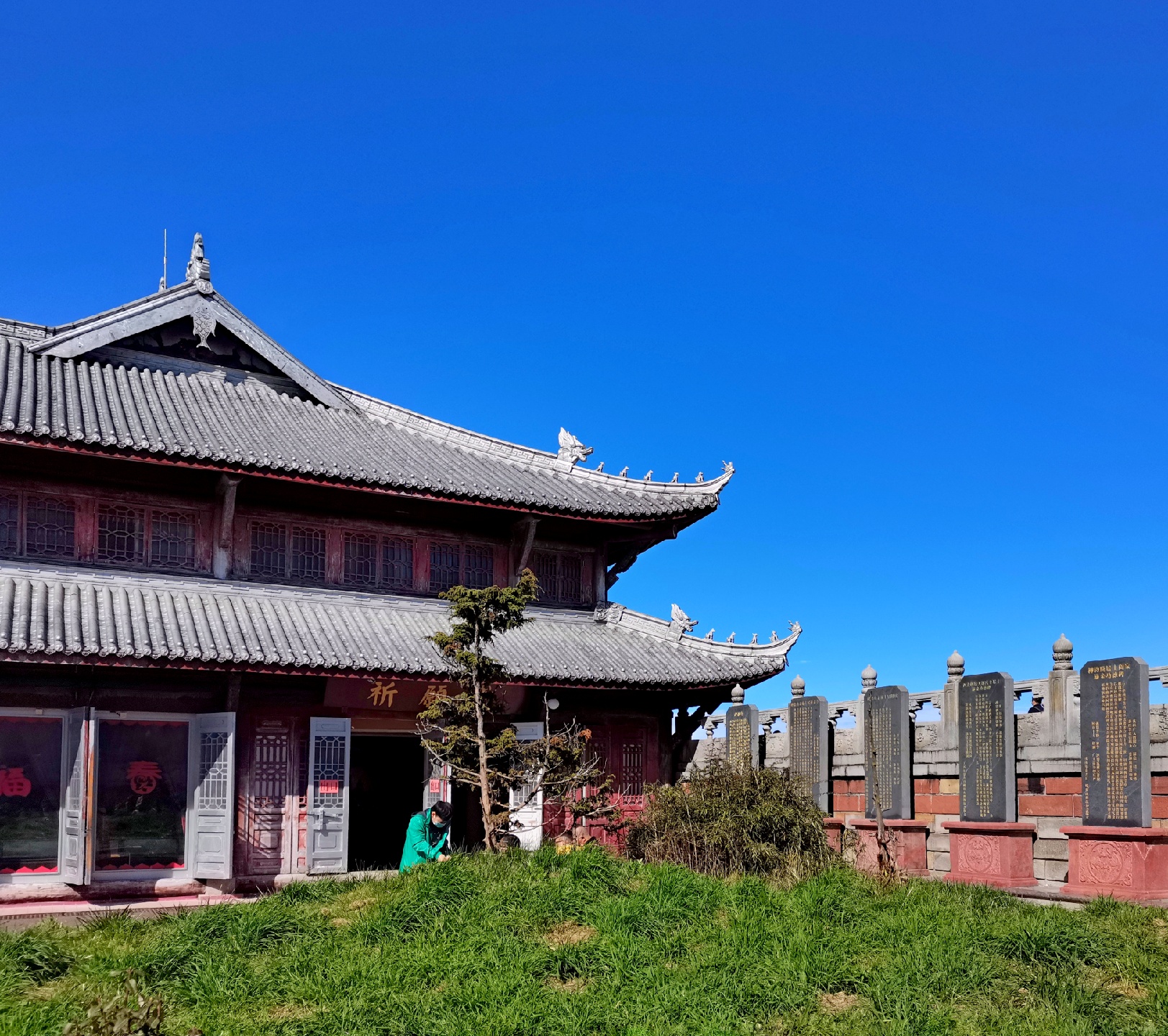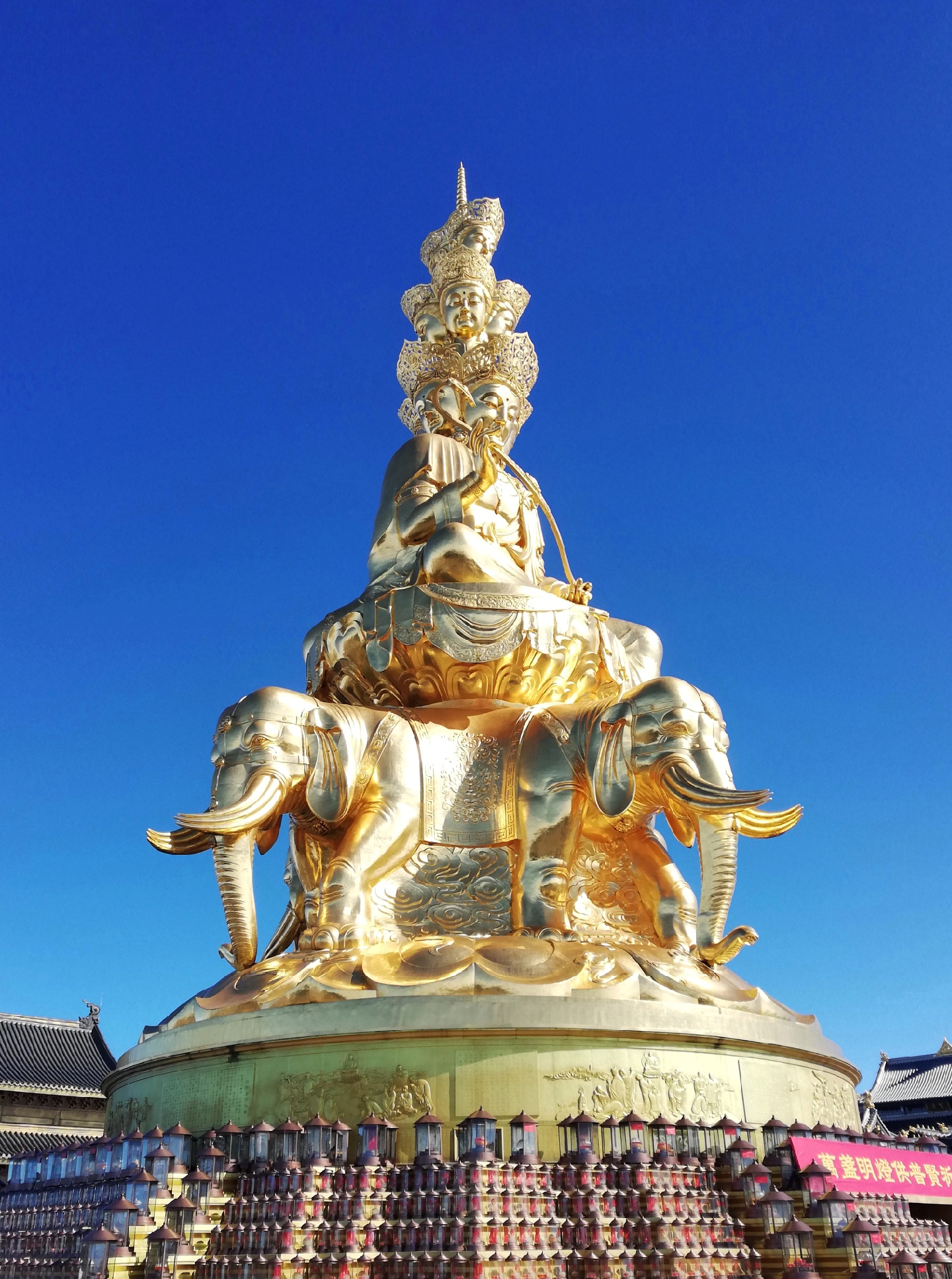 登上金顶可观看峨眉山四大奇观,日出、云海、佛光、圣灯。金顶与千佛顶、万佛顶相印,万佛顶上亦有建筑。金顶是峨眉山寺庙和景点最集中的地方,名胜云集,精华所在。峨眉山层峦叠嶂,山势雄伟,景色秀丽,气象万千,自然和人文景观都非常美好。(3)