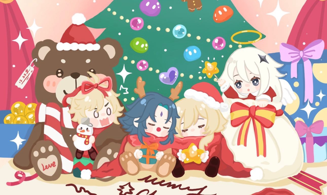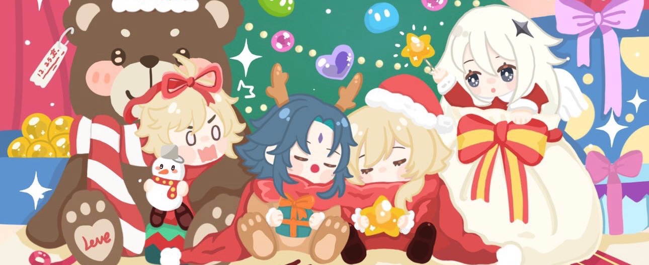 空荧魈和派蒙提前祝大家圣诞快乐🎄🎄🎄
