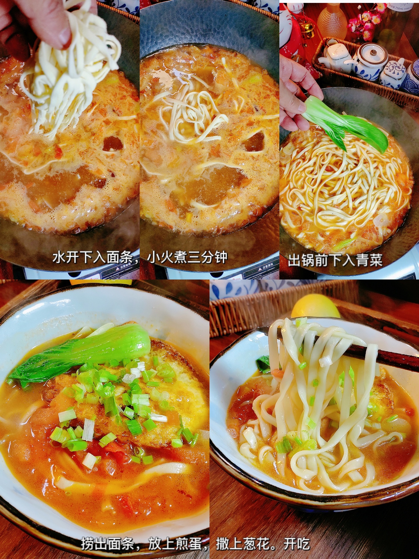 不要对生活失望了,幸运将会在下一个转弯处等你。番茄鸡蛋面做法:①葱姜蒜切末,番茄切丁,油热煎个荷包蛋捞出备用。②起锅烧油,下葱姜蒜爆香,放入番茄块,加一勺番茄酱炒制软烂。加水500毫升,加盐,鸡精。花椒面,耗油老抽各一勺调味。水开下面条煮一分钟放入青菜烫熟,,捞出。摆上煎蛋,撒上小葱花,好吃的番茄鸡蛋面做好了。