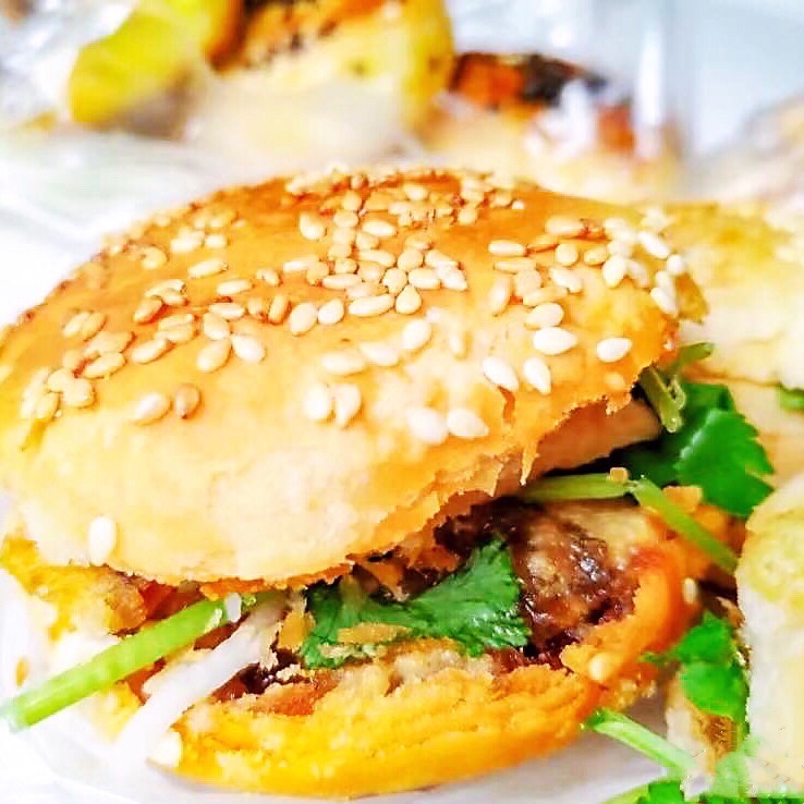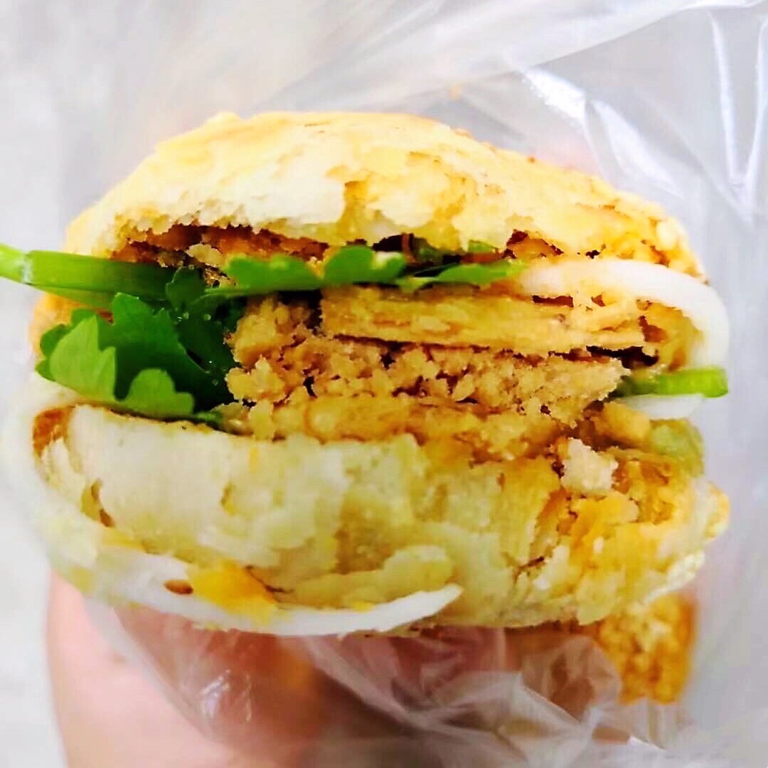 一颗朴实无华的烧饼✨趁着现烘熟的热气被剪开,小心翼翼地不让酥皮就那么碎在手里🐋塞进沙丁鱼罐头、肉松🥓贡糖、甜辣酱、菜头酸和芫荽,一口咬下去酸甜辣咸丰富滋味喷薄而出‼️