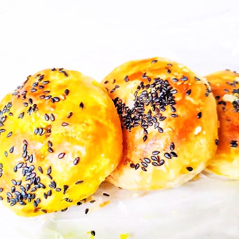 咖喱味的北仔饼🥞光从外皮上就与一般烧饼不同,金黄光滑的样子😋还撒了黑芝麻作为点缀,厦门的咖喱奶香味并不浓郁💕却是别有风味
