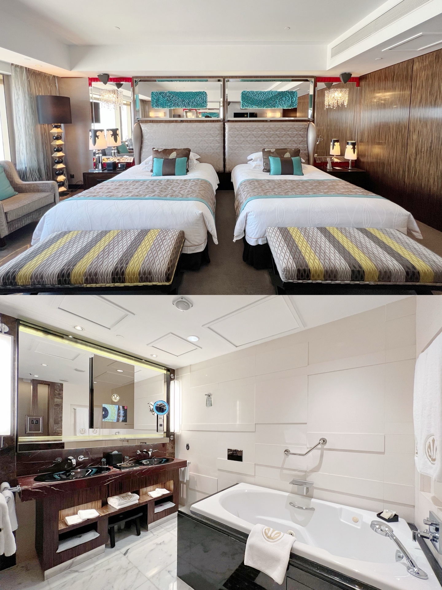 我们入住的是高级双床房,面积足足有52平,在澳门这寸土寸金的地方,房型面积真的很大啦。