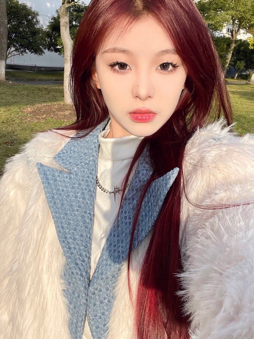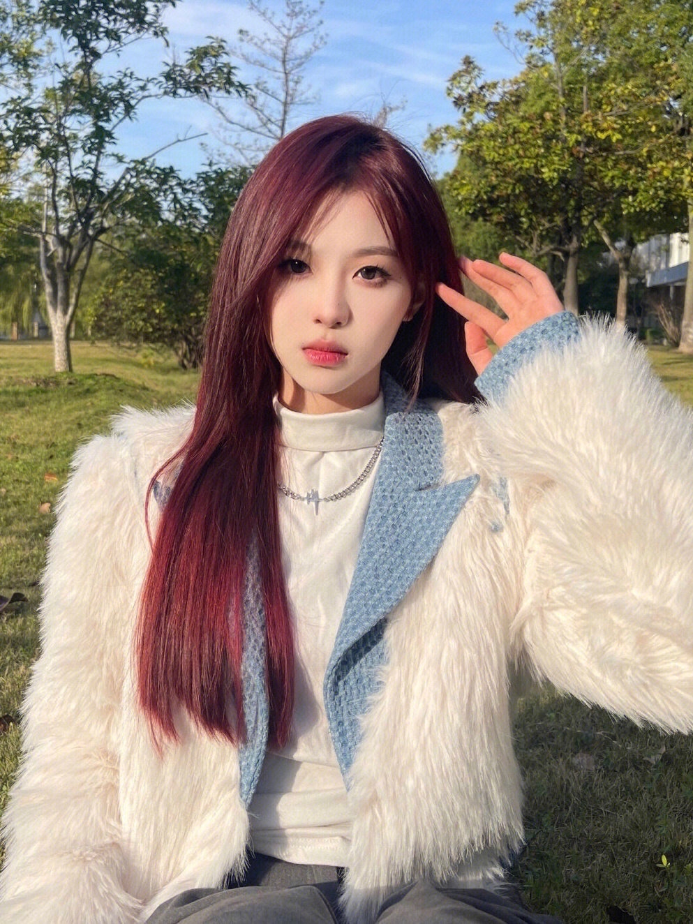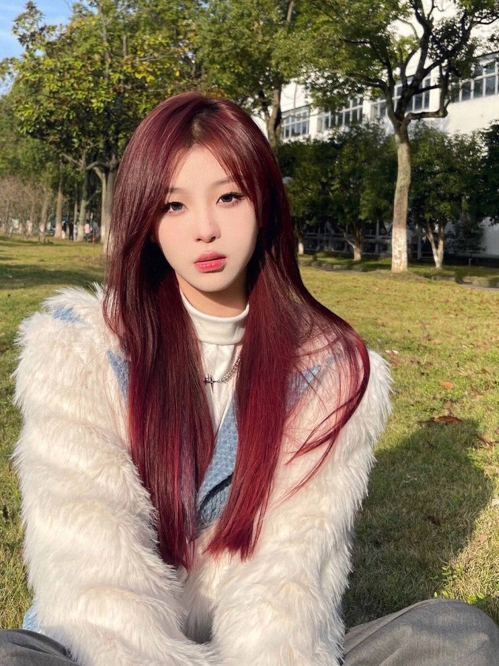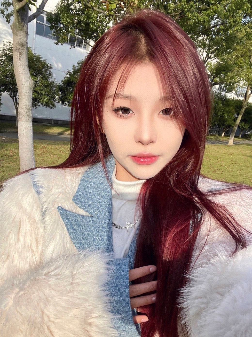树莓红棕色的发色真的很适合长卷发的女生,长发的女生要比短发女生更加适合染这款发色。