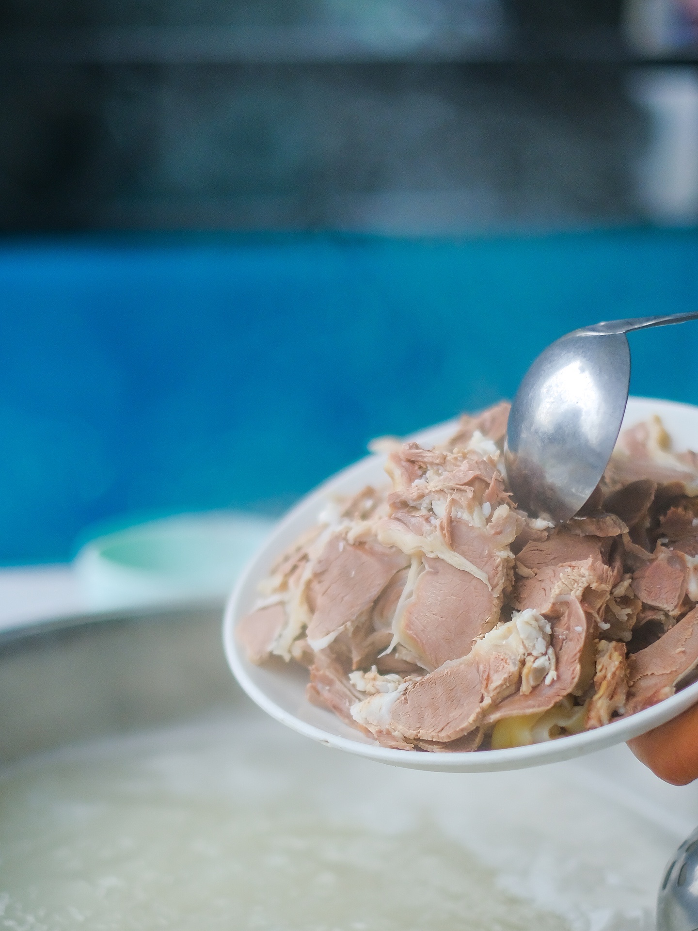 黄甲麻羊的肉质嫩,肉味鲜香,膻味低;熬得雪白的羊肉汤锅里,再放上羊肉,羊杂和羊血,在冬季里来上这么一碗,真的全身都温暖了!