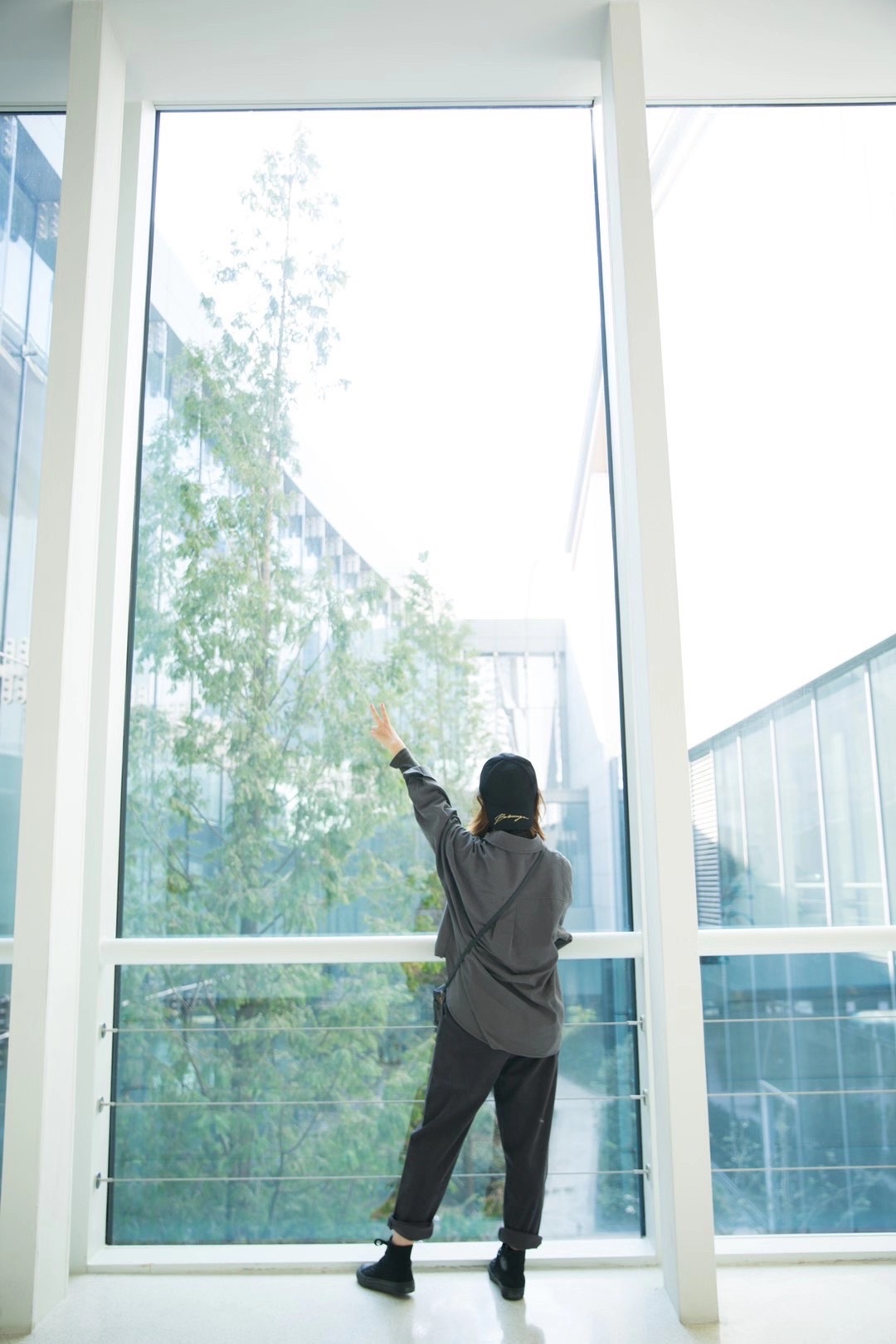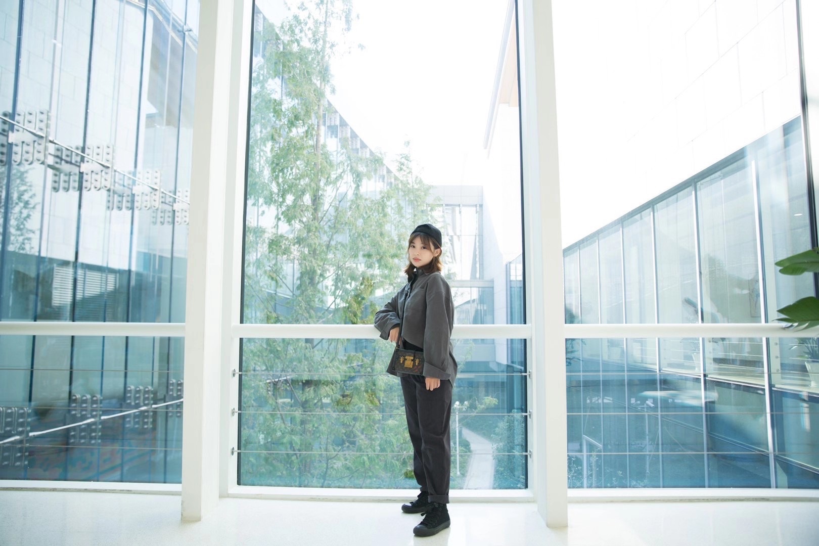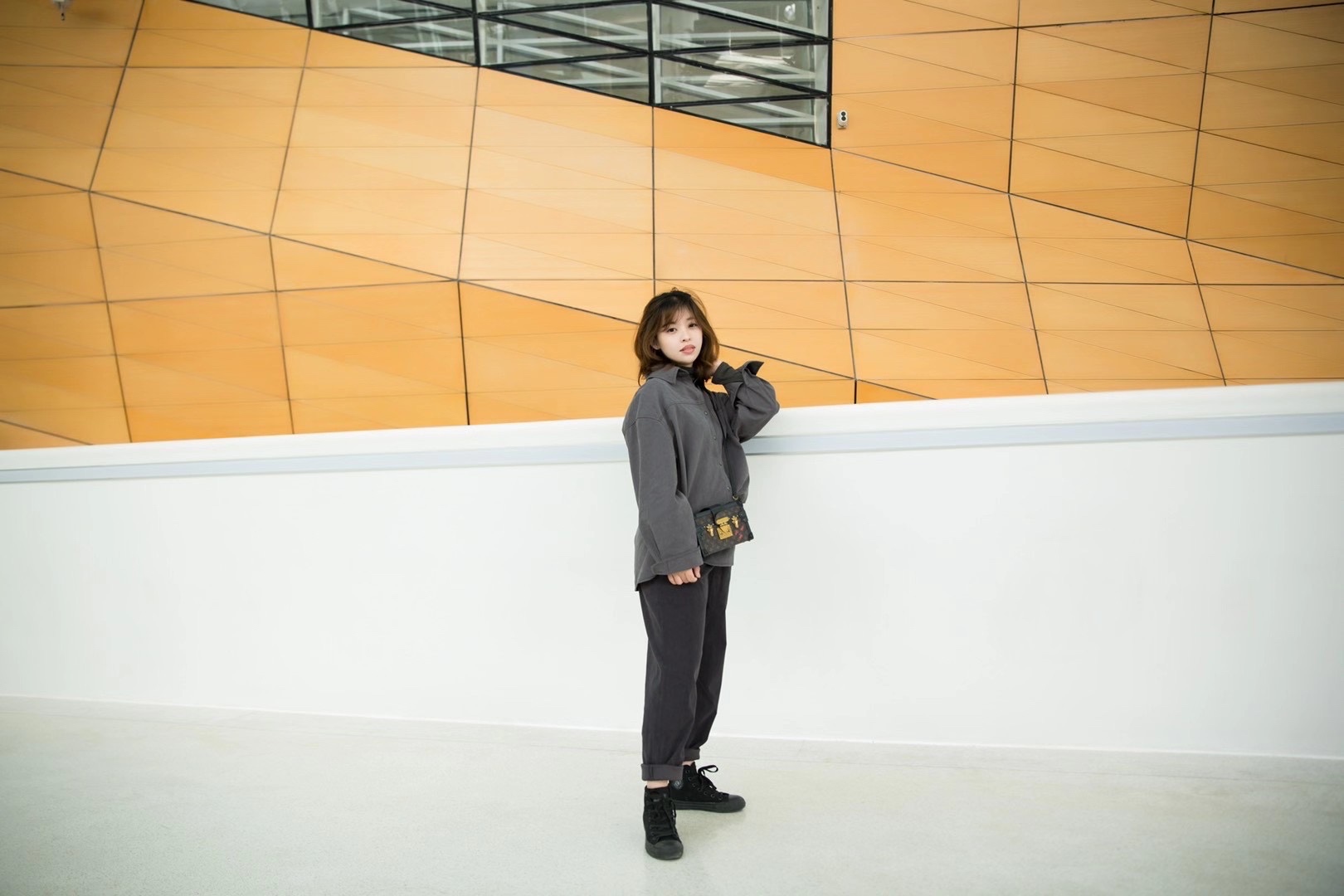 内搭:灰色半高领。 外套衬衫。裤子深灰条绒