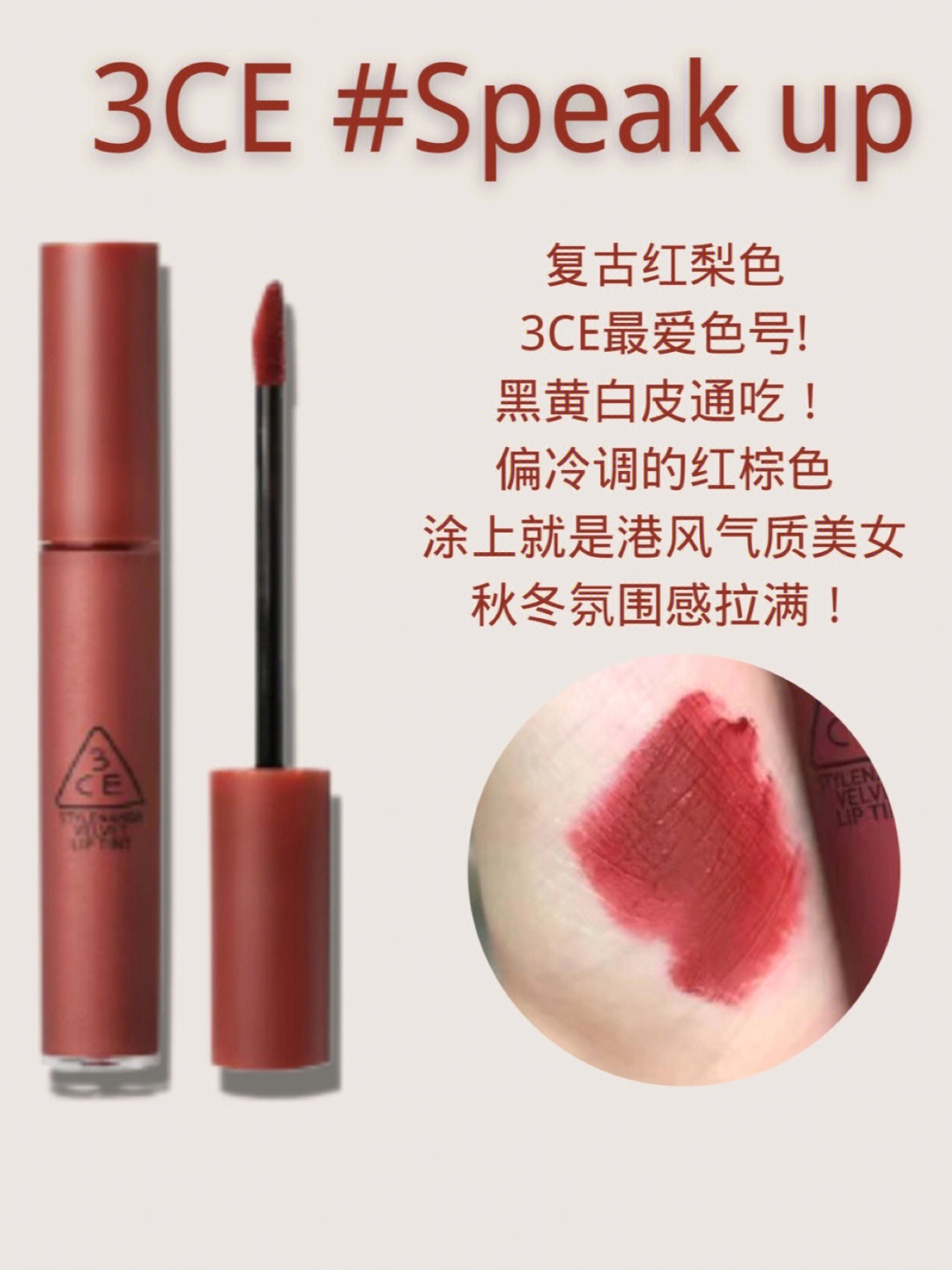 回购两支的复古红梨色,黑黄白皮通吃!偏冷调的红棕色,涂上就是港风气质美女,秋冬氛围感拉满!
