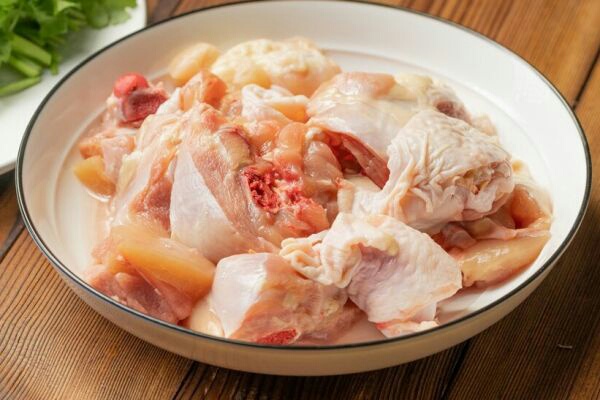 1、鸡肉剁成小块,冷水下锅,加上少许料酒进行焯水,之后捞出来,用清水冲洗干净,葱姜蒜也都切好,土豆切块。