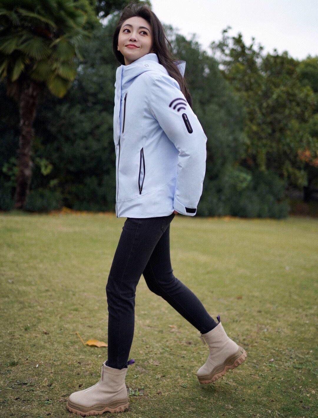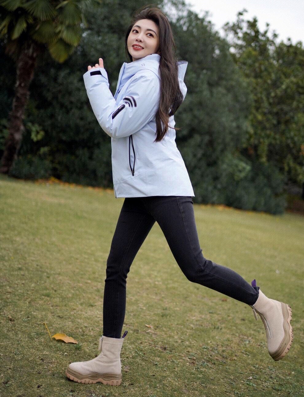 浅蓝色的冲锋衣搭配黑色瑜伽裤,漂亮大气,今年很流行冲锋衣,轻-美图社区-美图秀秀