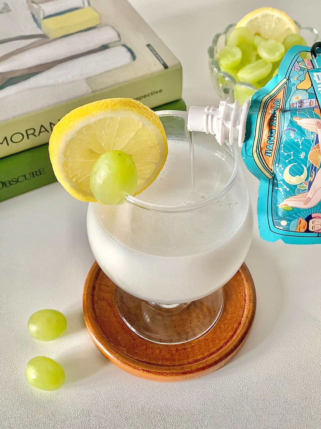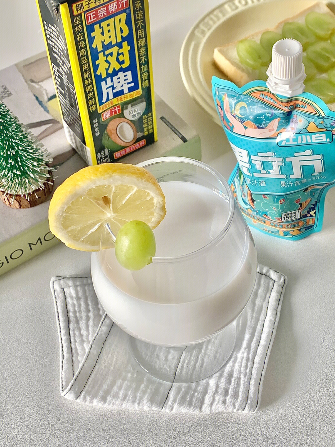搭配的饮品是用买果立方口袋酒+椰汁调的,白葡萄搭配椰汁味道太清爽太好喝太绝了。
