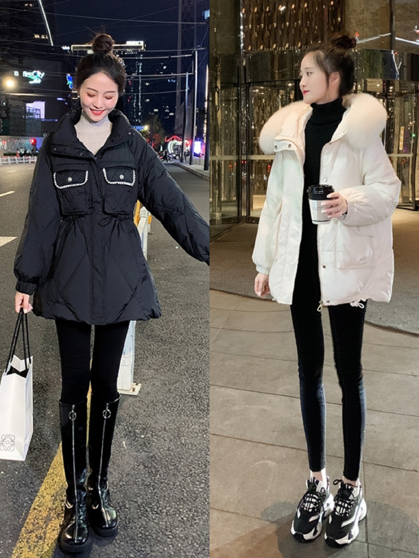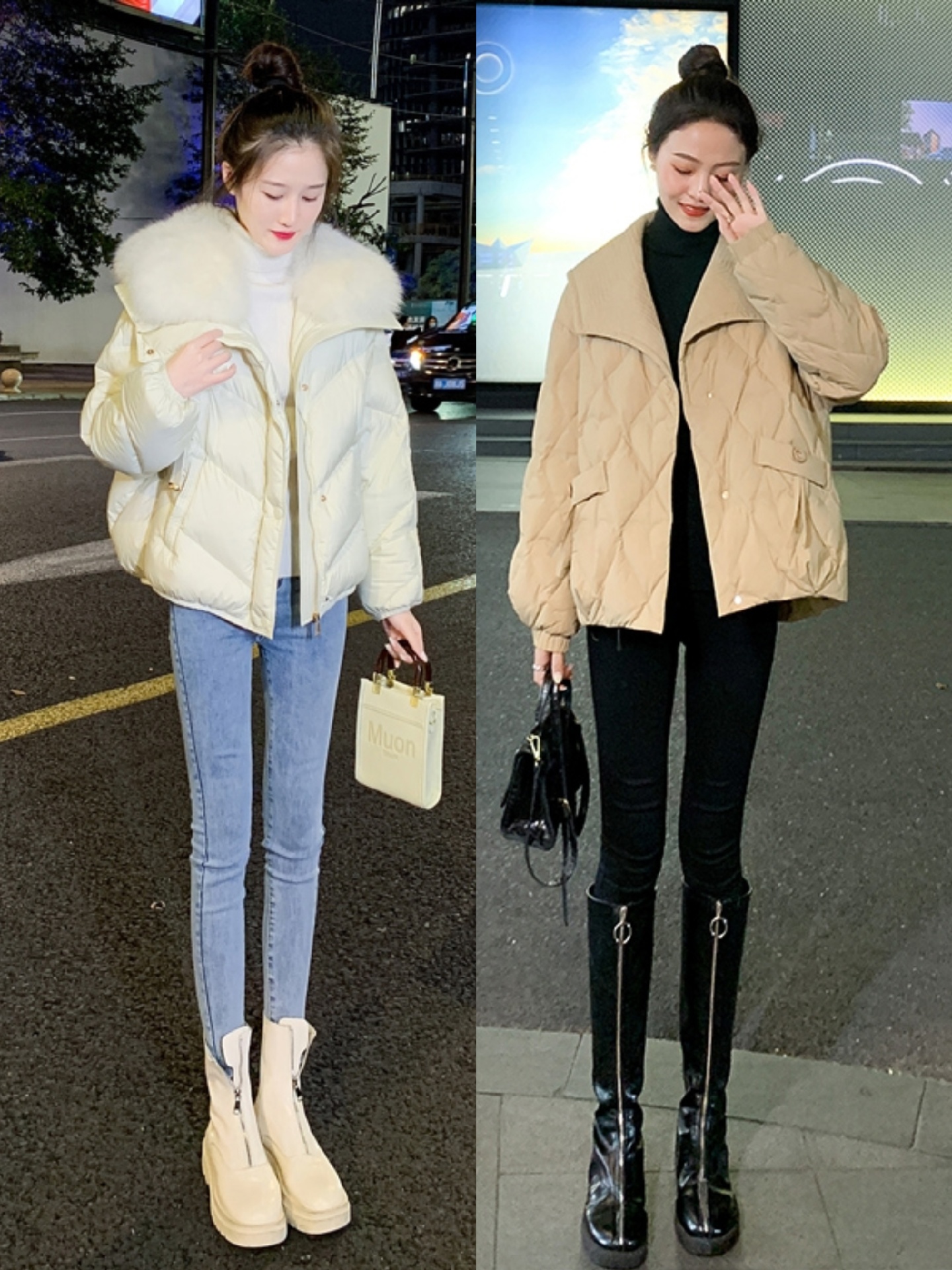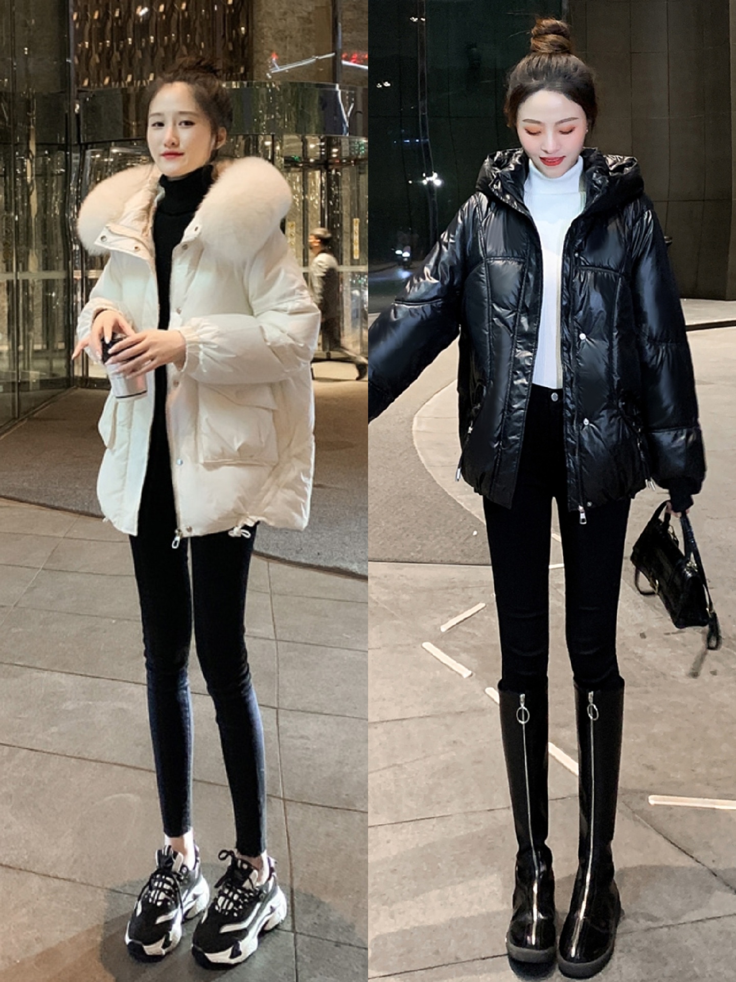 冬季有的小个子女生不知道怎么穿搭的比较显高更好看一些,不知道搭配什么衣服裤子鞋子,我们可以用上紧下松的穿搭技巧来搭配衣服,我们来看看,短款羽绒服搭配紧身牛仔裤。拥有蓬松的短款羽绒服,看起来很容易显矮显胖,可以用黑色来收缩一下视觉。我们用紧身牛仔裤是为了穿出“上松下紧”的效果,并且延伸下半身线条,让你显高显腿长。