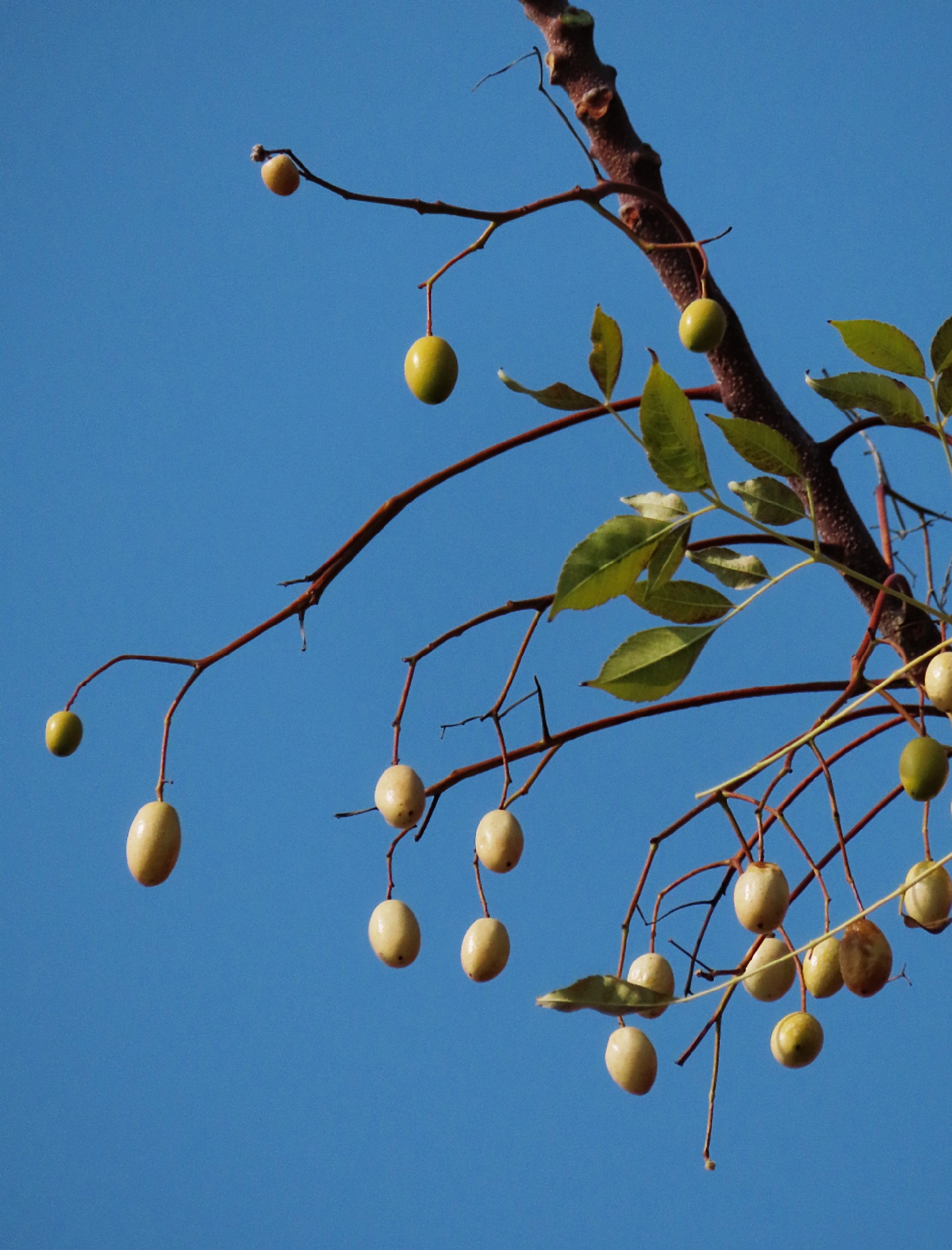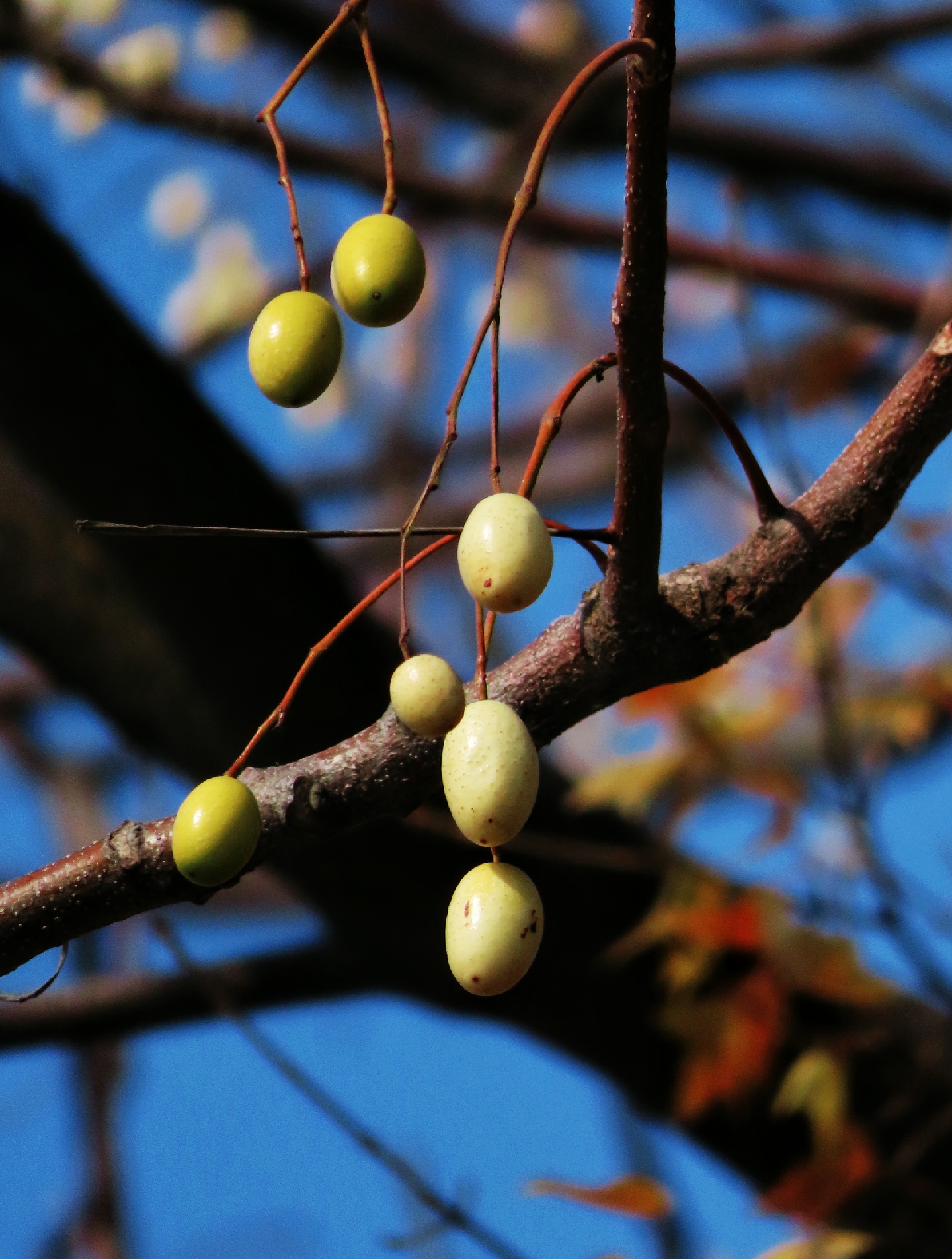 🎋当下正是楝树结果的时候,武陵阁船码头边楝树上结了不少果子,淡黄色的果子,圆溜、光滑,惹人怜爱。