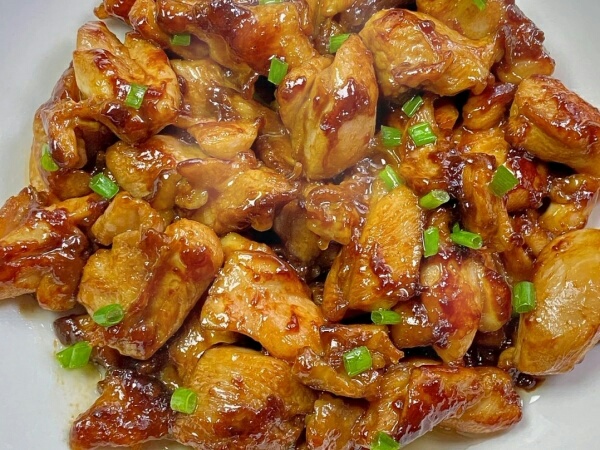 3、炒熟鸡腿肉,煎至两面焦黄后就可以了,最后撒上葱花即可出锅。