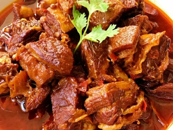 4、炖煮好之后,夹出香料,开大火翻炒收汁即可出锅开吃。