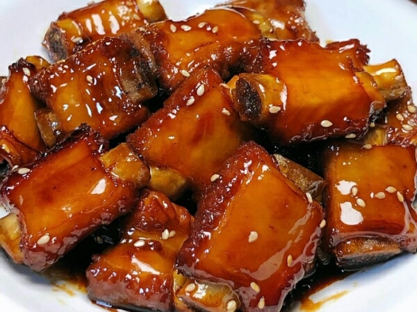 准备食材:排骨,八角,香叶,桂皮,干辣椒,冰糖,葱姜,白芝麻。