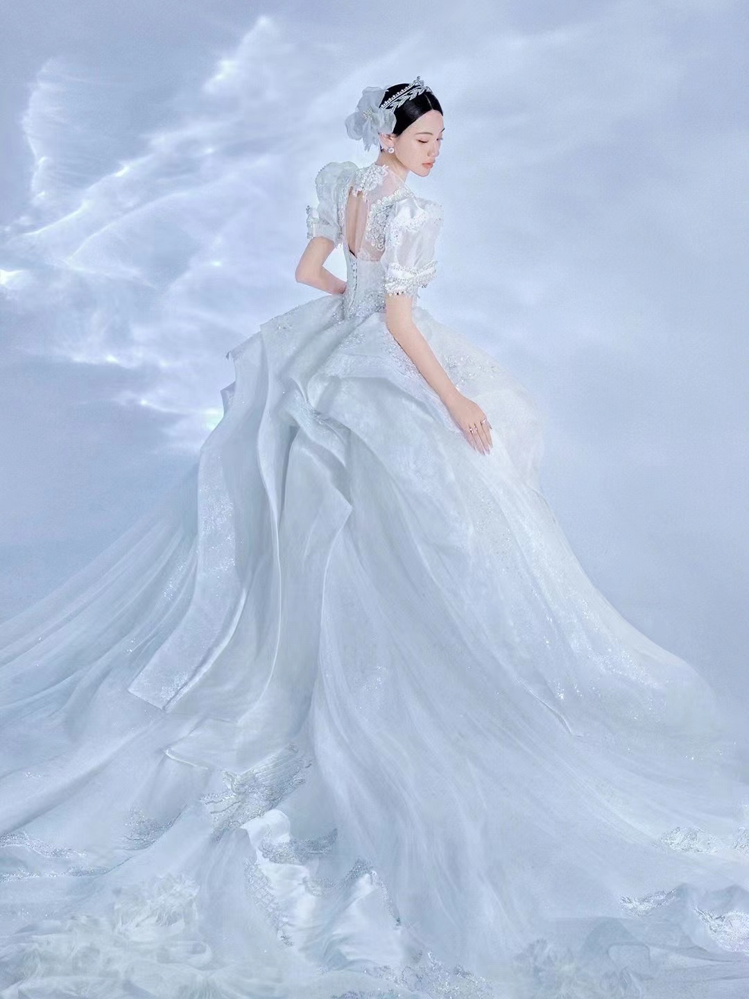 光影和水波纹的完美结合✨ 高级质感超耐看👌 洁白的婚纱搭配浮动水波纹, 这一组婚纱照太完美了‼️