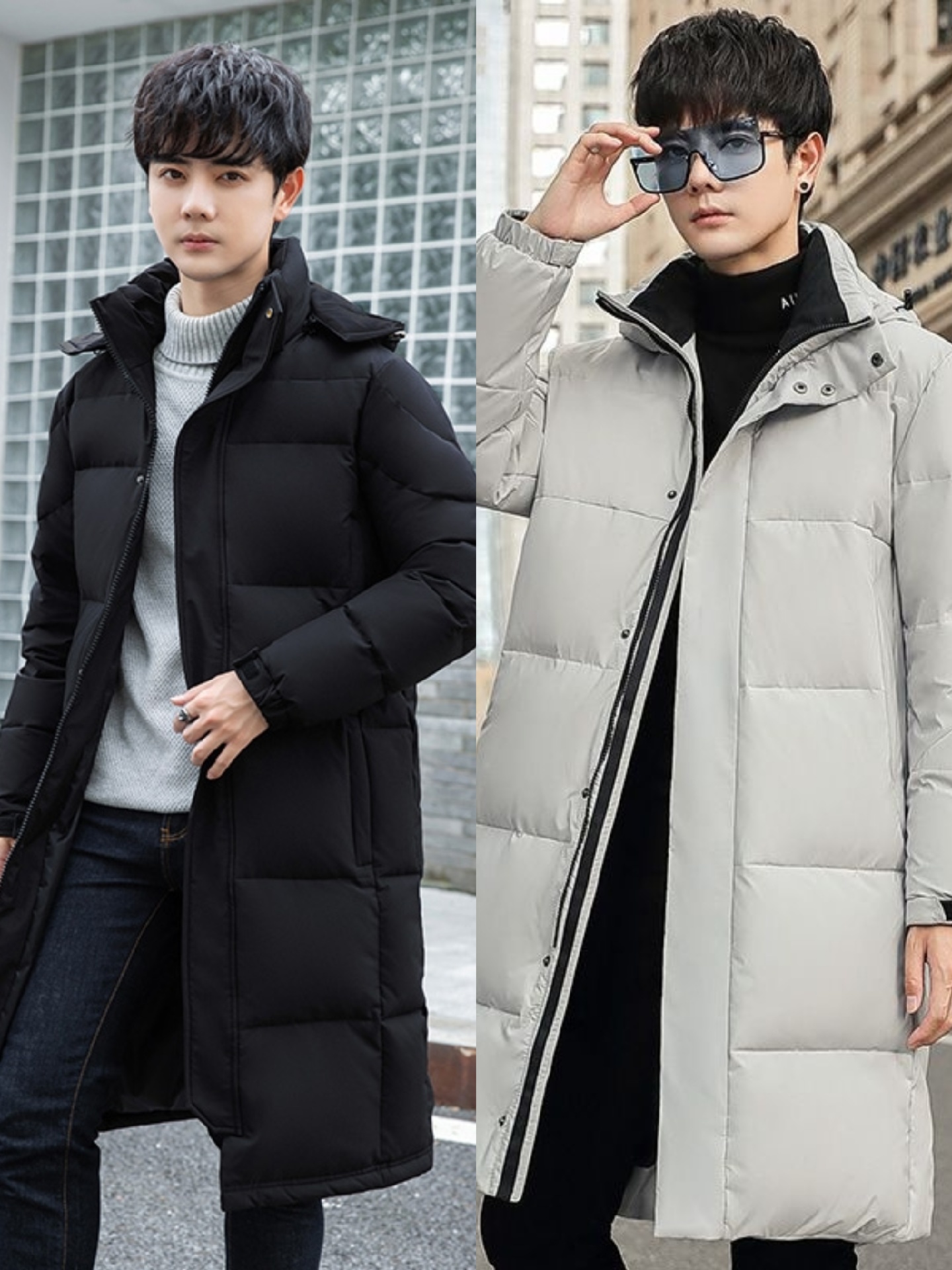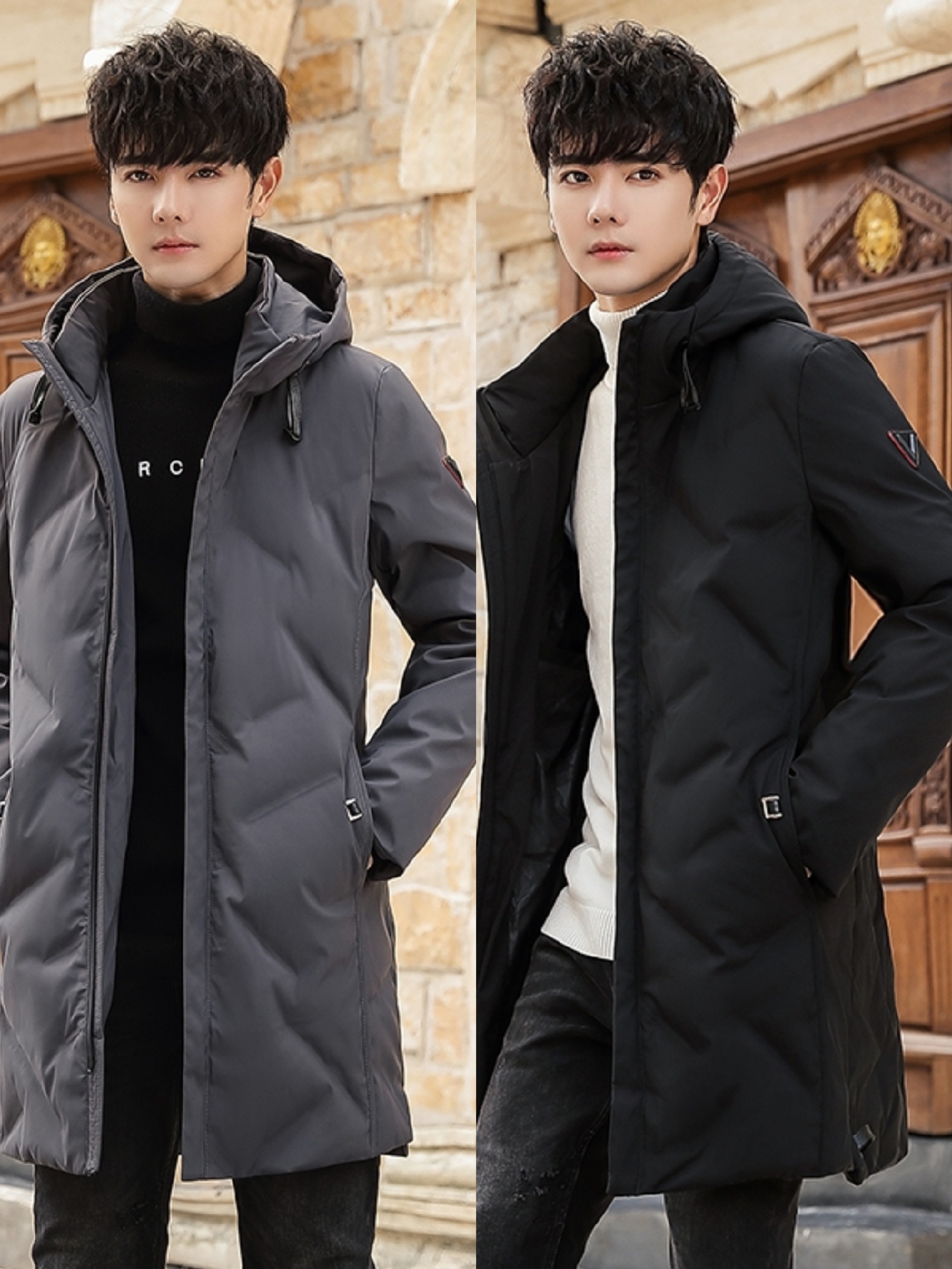 冬季男生穿搭怎么穿搭帅气又保暖呢?羽绒服是长款修身显瘦,比较胖的男生穿着是很显瘦的,舒适自在。在寒冷的冬季披上这样一件羽绒服不管是骑车、坐车还是走路都可以挡挡这寒冷的风。保暖好穿。