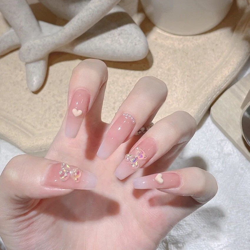 粉色系显白长款美甲