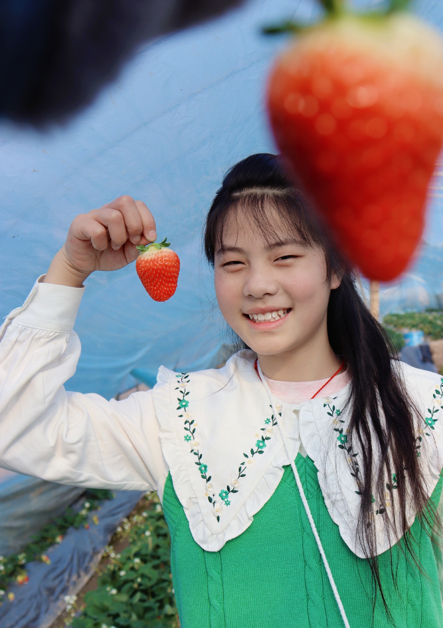 摘草莓🍓的女孩,笑的太开心啦!