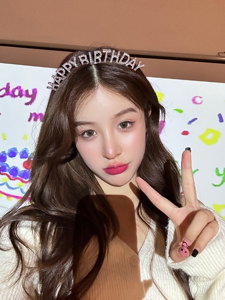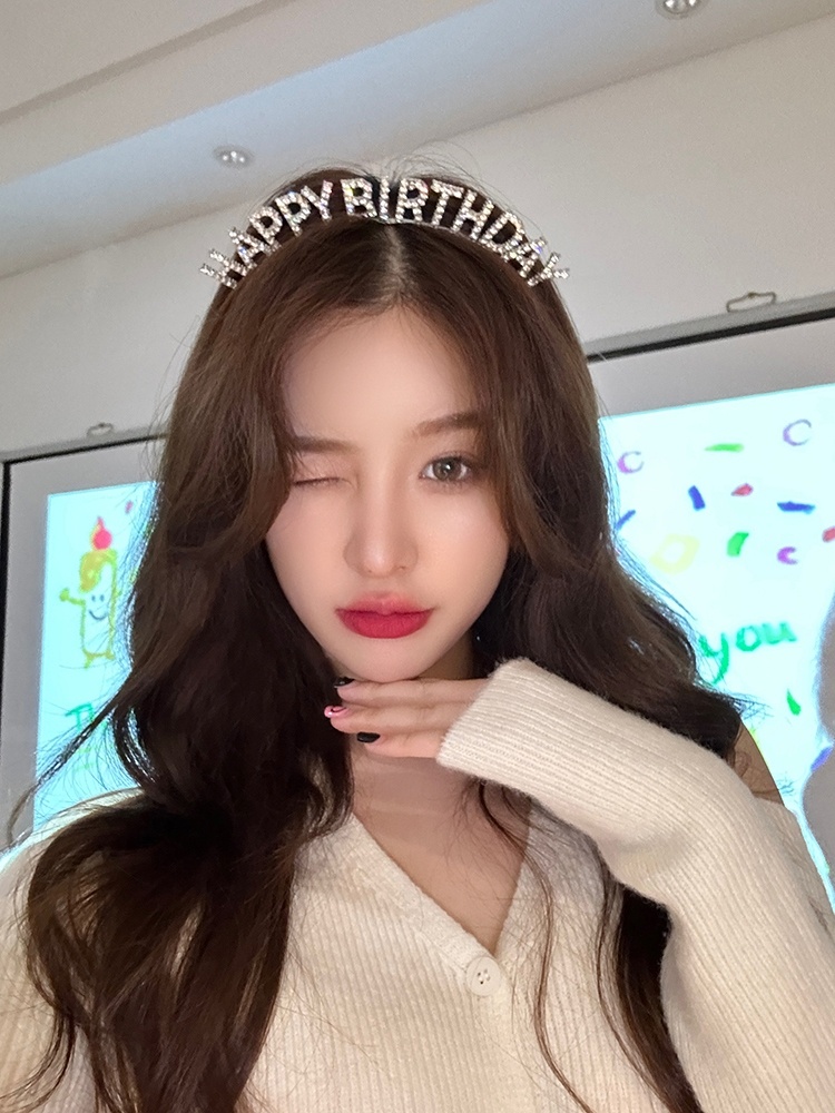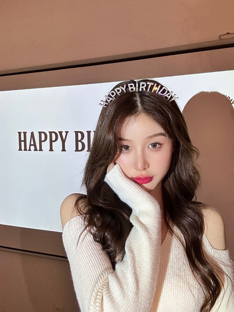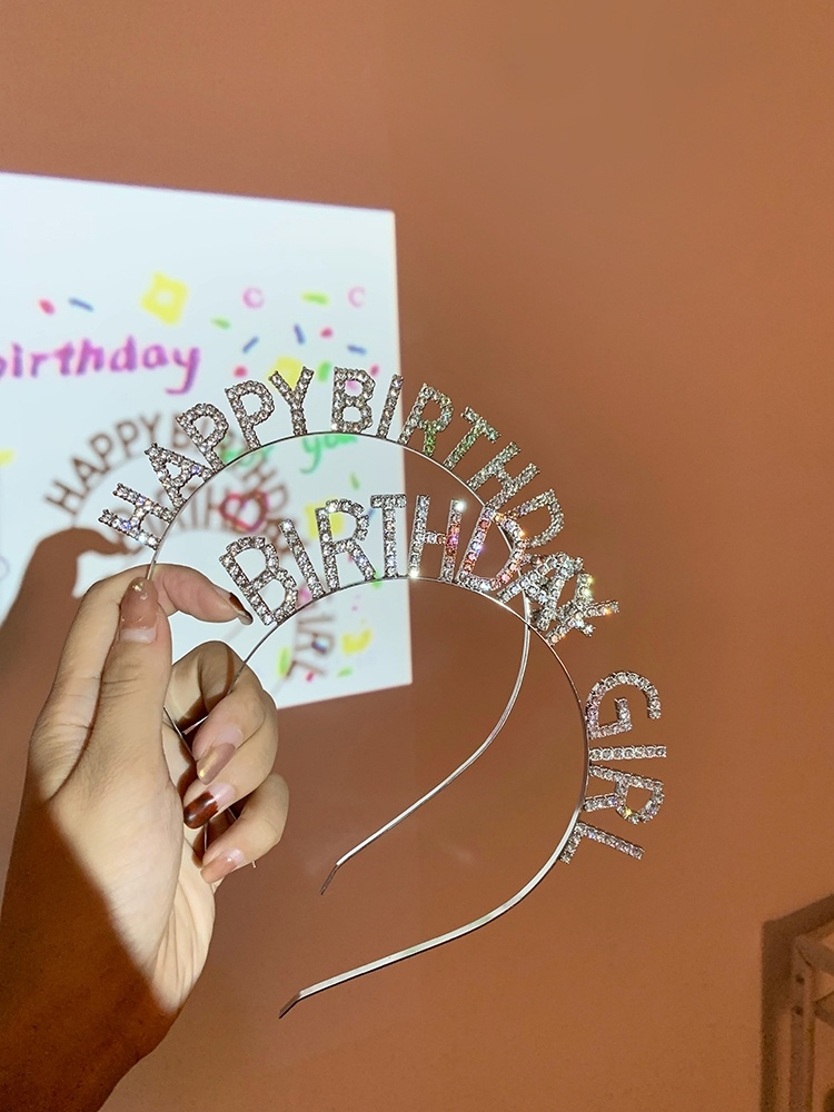 超闪水钻生日快乐发箍女神公主派对发卡英文仙女拍照道具头箍发饰