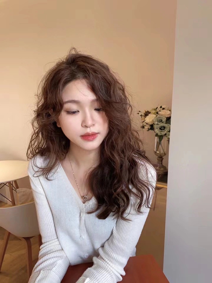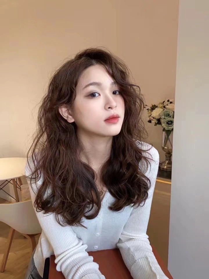 烫完显发量多,让头发更加蓬松有型,搭配八字刘海显气质,而且修饰脸型!