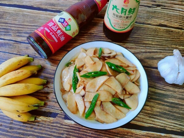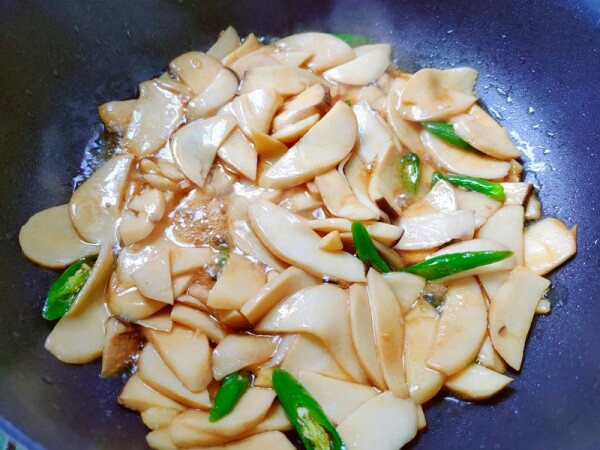 材料:杏鲍菇3个,蚝油半勺,蒜1瓣,酱油1勺,青辣椒2个,盐适量,鸡精适量。