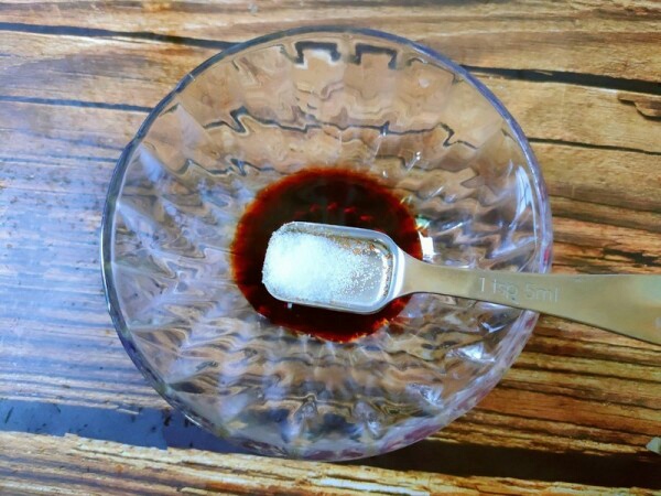 2、调料汁:1勺酱油,适量盐,半勺蚝油,加入半碗清水,搅拌均匀。