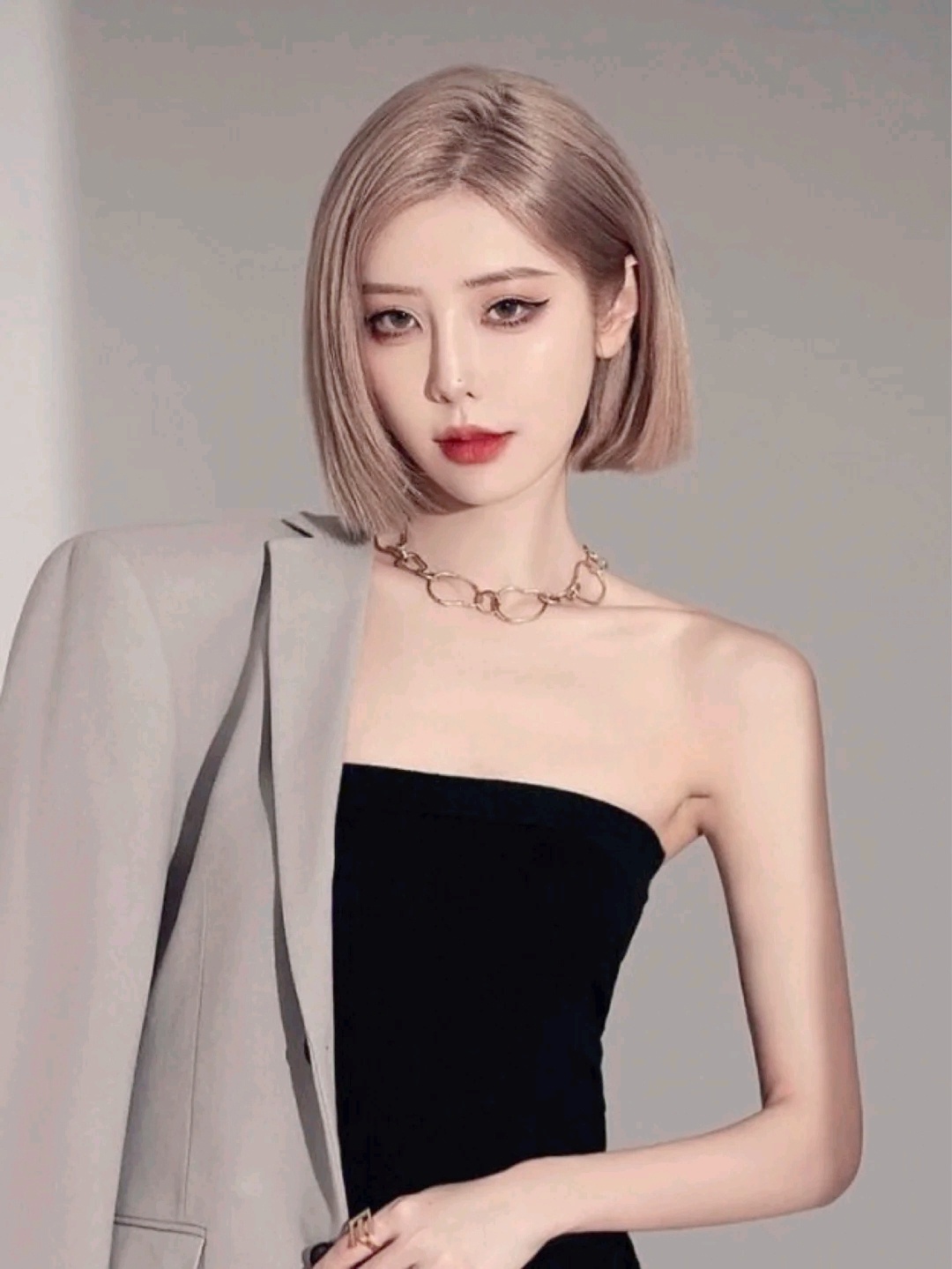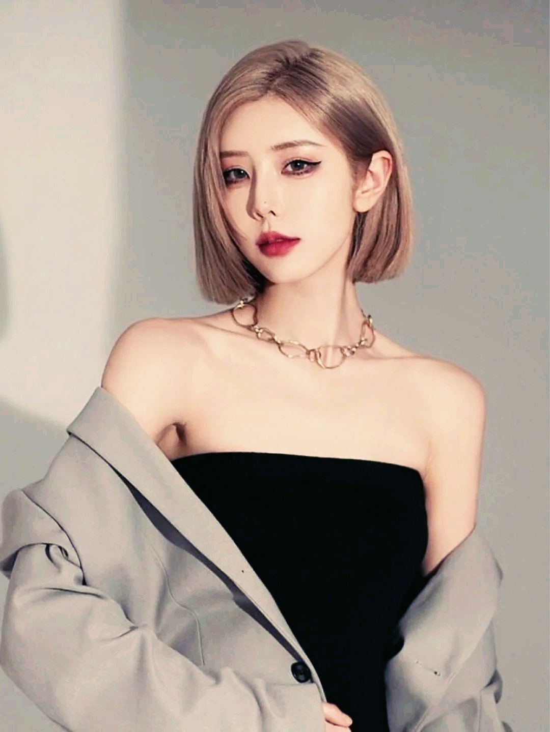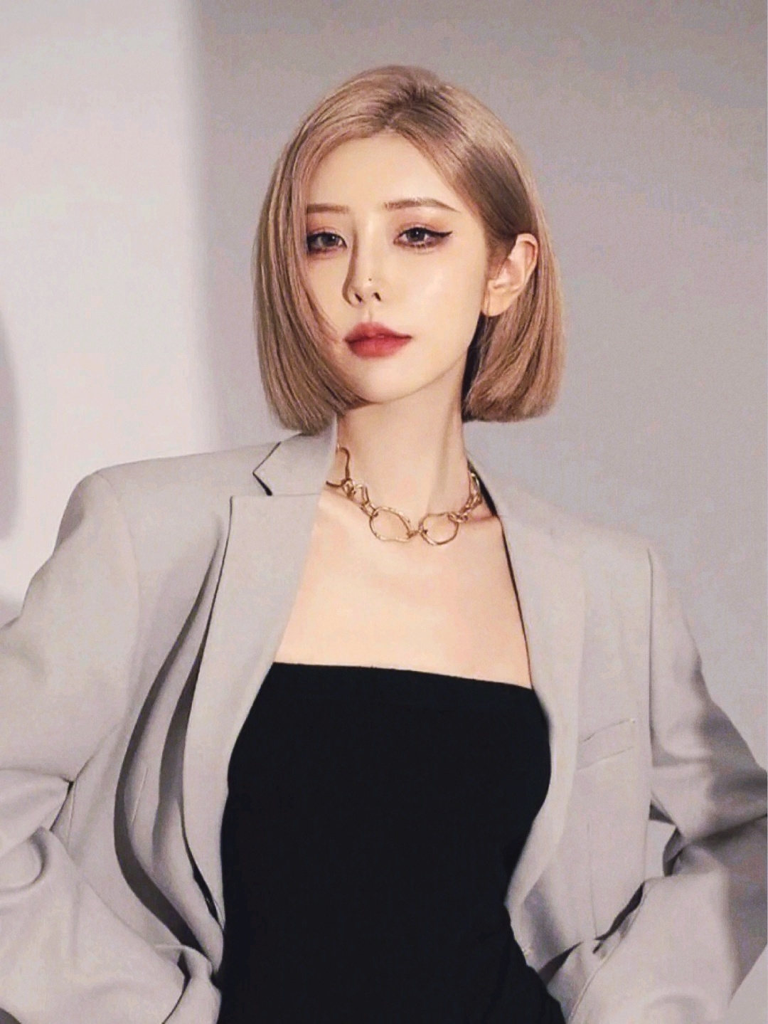 🌈高级感超A,一刀切短发,精致干练的垂感短发夏季搭配奶茶色修饰脸型又减龄!🔥——🌼🌼搭配欧美风妆容满满的性感风,又A又酷显白百搭的发色非常好看~🍭🍭—✅✅一刀切短发几乎适合所有女生哦、肤色白皙一点剪这款短发就很有少女感。