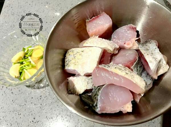 1、将鱼块清洗干净沥干水分,再准备一些葱姜蒜备用。