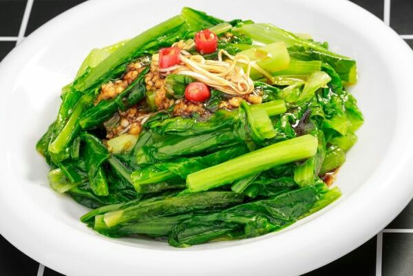食材:油麦菜、大蒜、盐、白糖、蚝油、生抽、淀粉