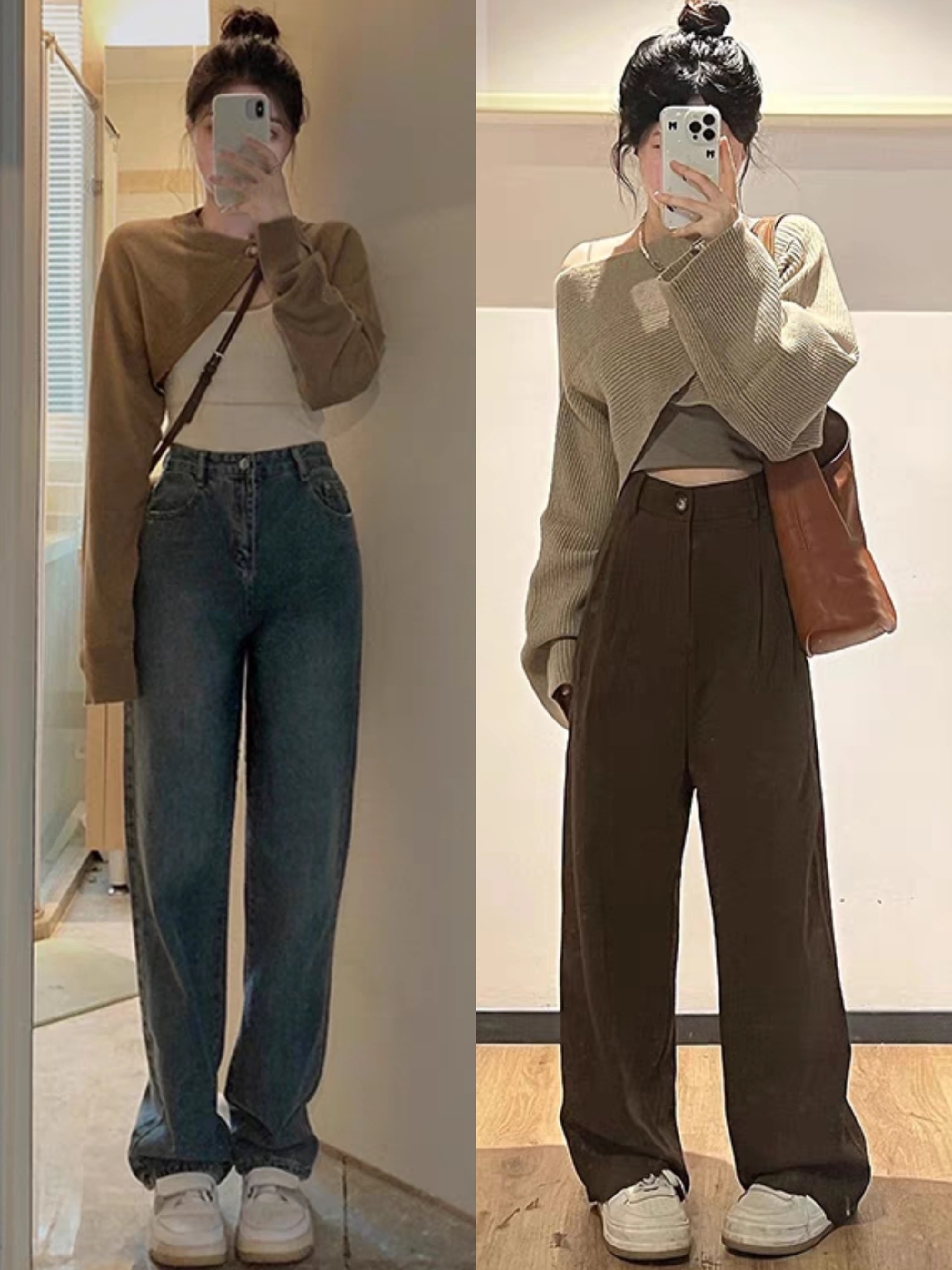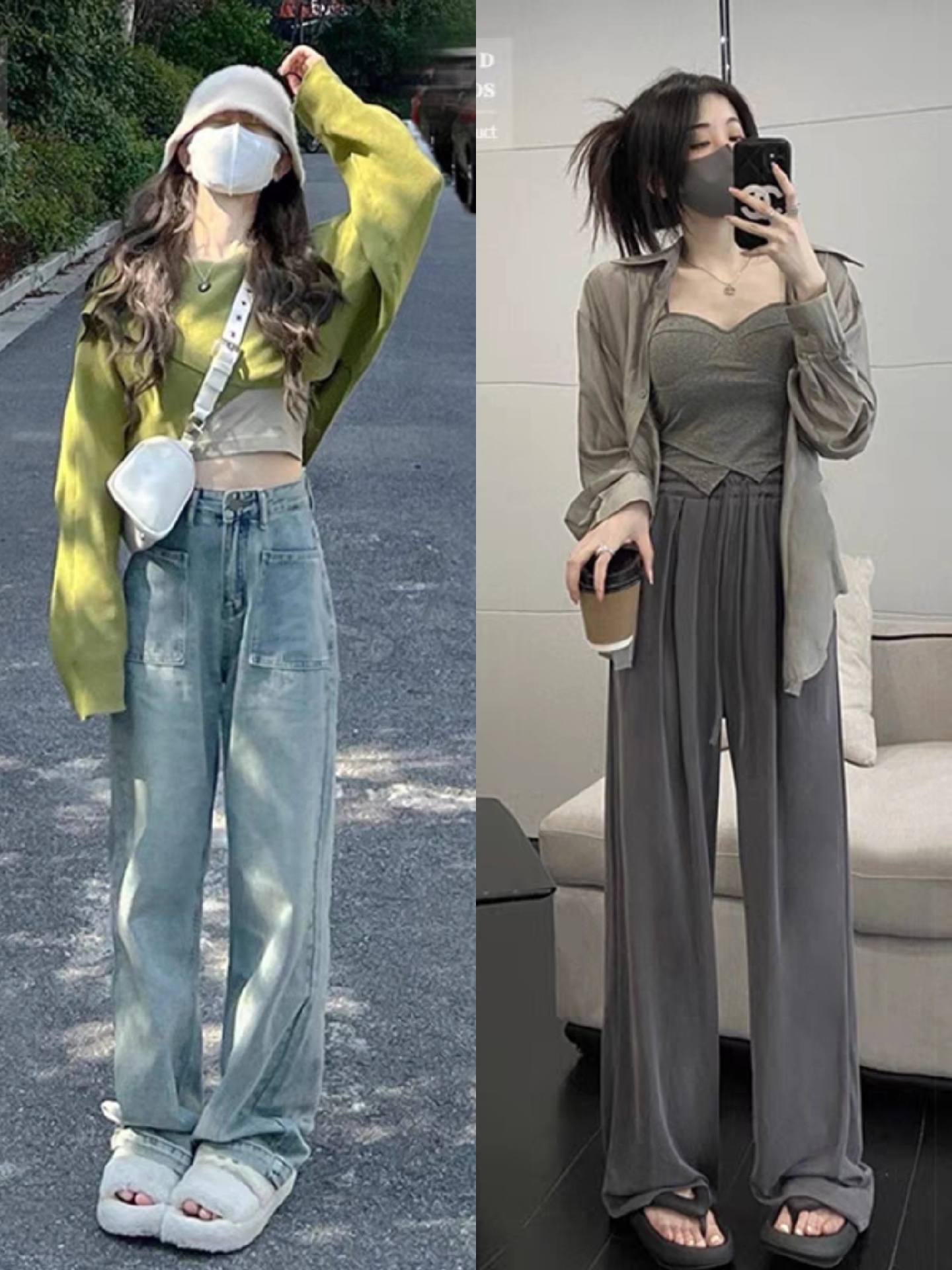 第四、直筒牛仔裤搭配宽松衬衫,显瘦还很时尚。