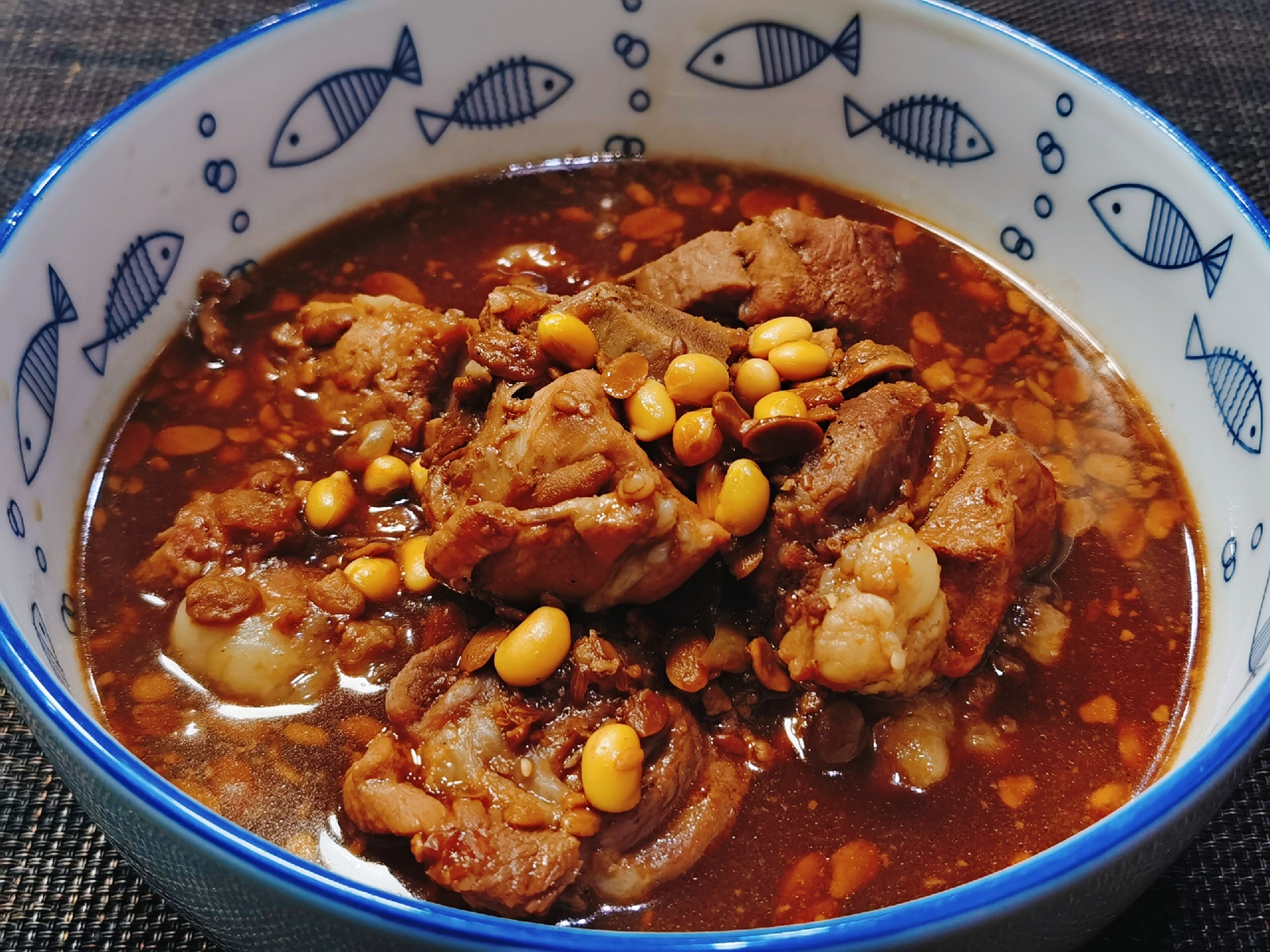 黄焖肉排用了鲜黄豆和黄豆酱一起来焖,焖到肉酥酥的豆香四溢很容易吃饭吃多。