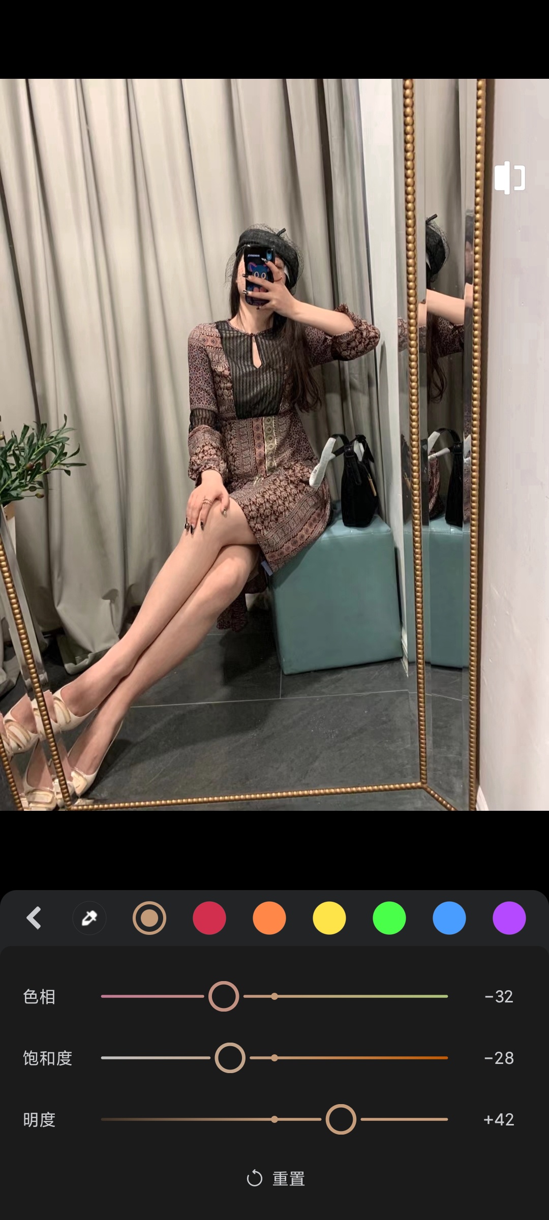 2⃣️第二步:最关键的一步!还是在“调色”里面找到HSL选择第一个“肤色”色相➖32➡️饱和度➖28➡️明度➕40(大致参数放图4啦)