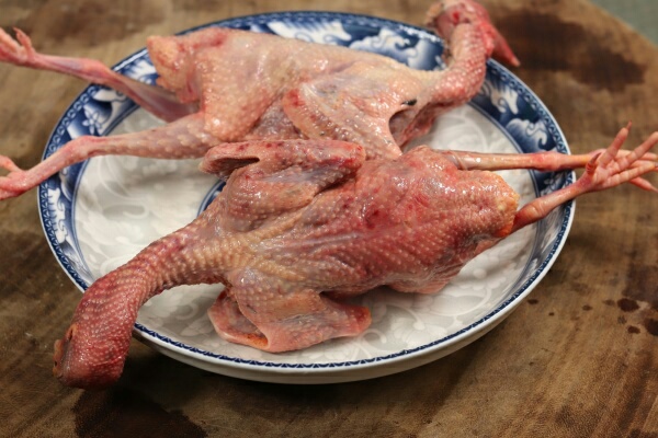 1.准备两只老鸽子,先将鸽子给它处理一下,再用流动的清水将鸽子冲洗干净,用剪刀将头部和屁股给它剪掉,准备一块生姜切成片,一颗大葱切成小段,准备4个大枣,1小把枸杞备用。