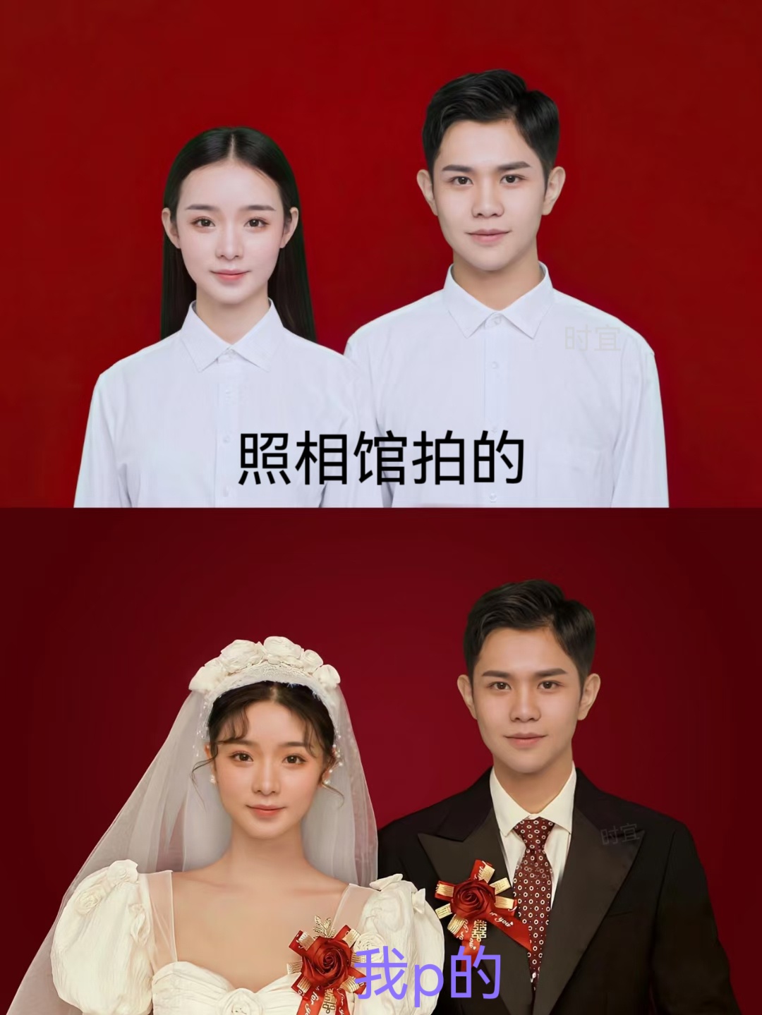 结婚证件照换装发素材模板分享,不好看的照片p个图就好看了!和对象还没有一张红底照也可以拿素材进行合成,爱了爱了 P图 #我们领证啦官宣