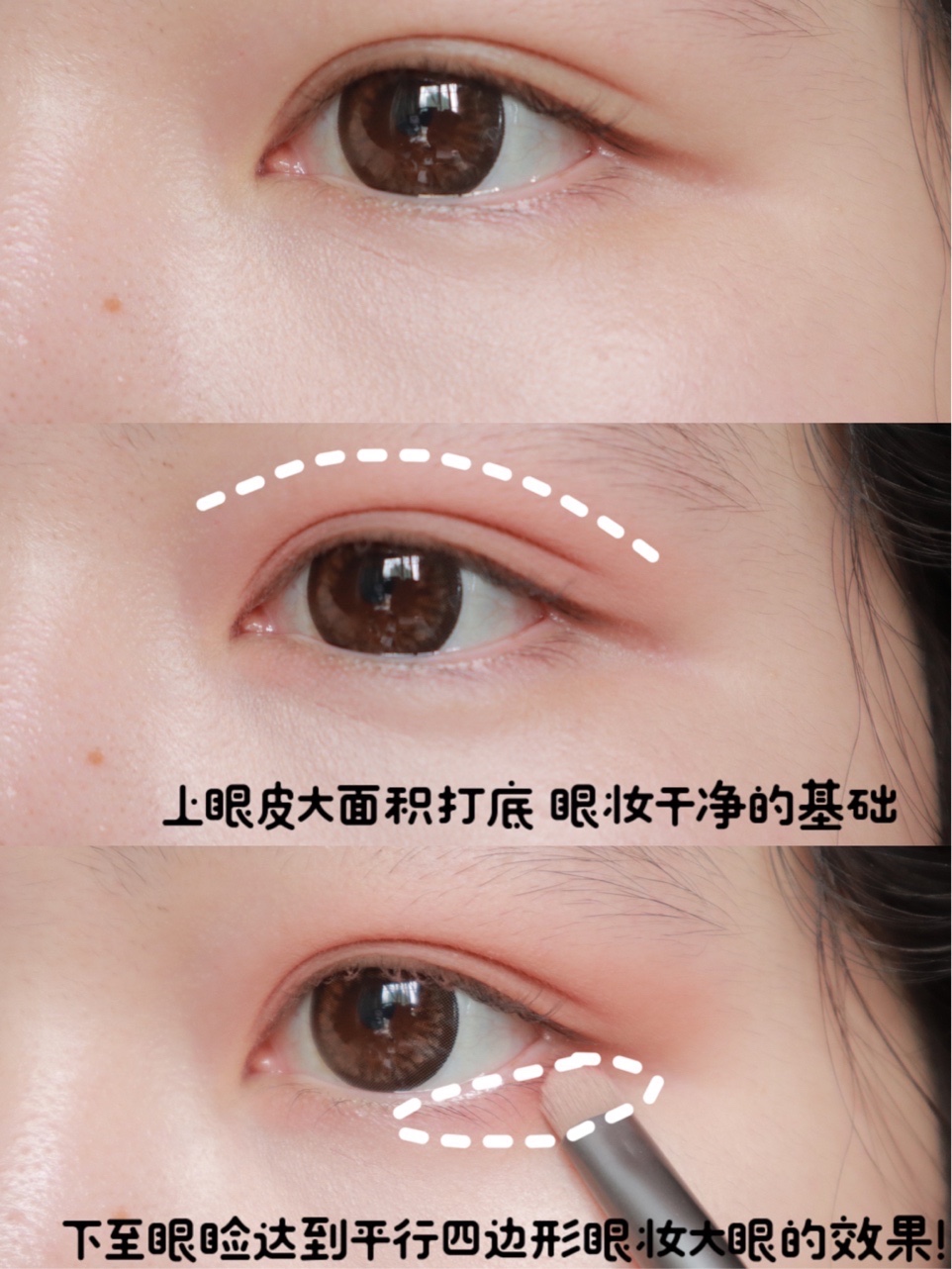 2⃣️淡妆就不用深色加重眼尾了,咱们把重点放在下眼睑!如图加深就好