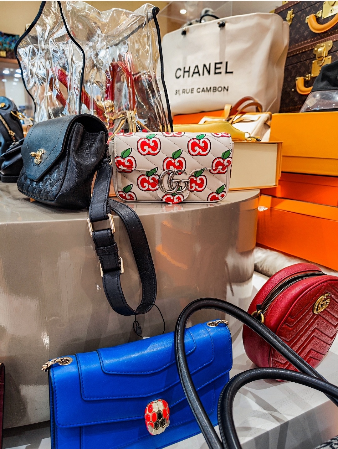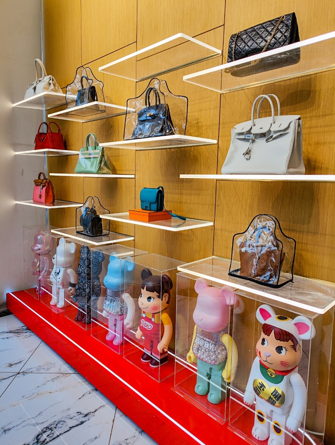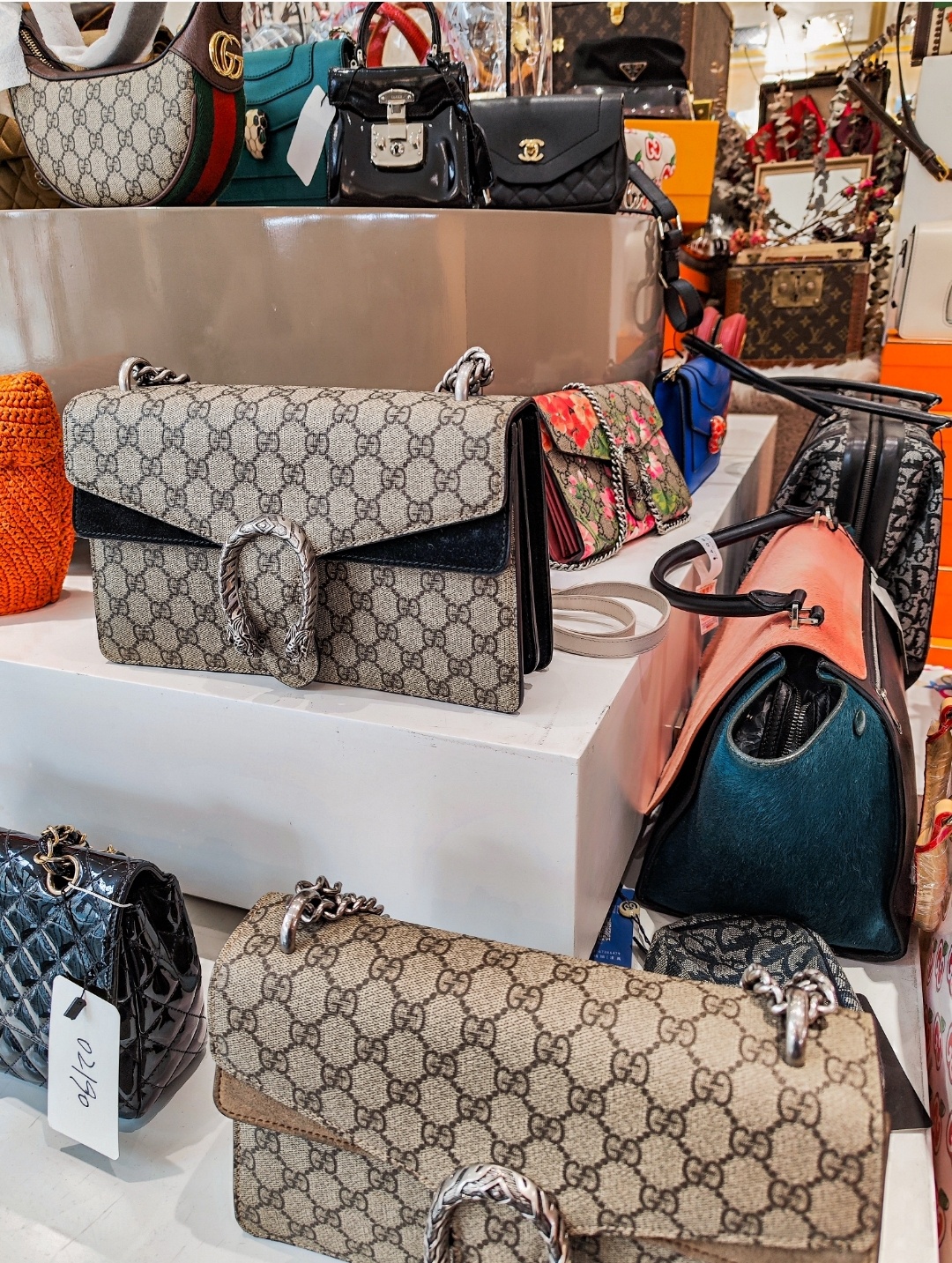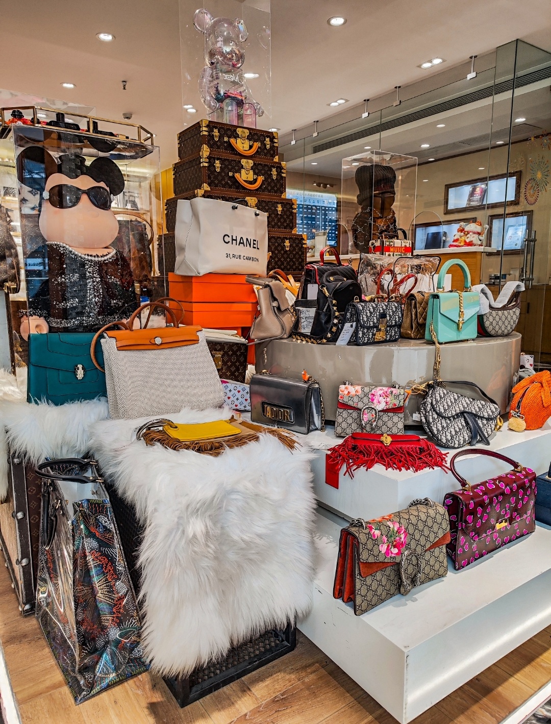 🚪进门发现琳琅满目的奢侈品在眼前…陈列架放了各种热门款,爆款、收藏款 如LV、GUCCI、DIOR、CHANEL等等