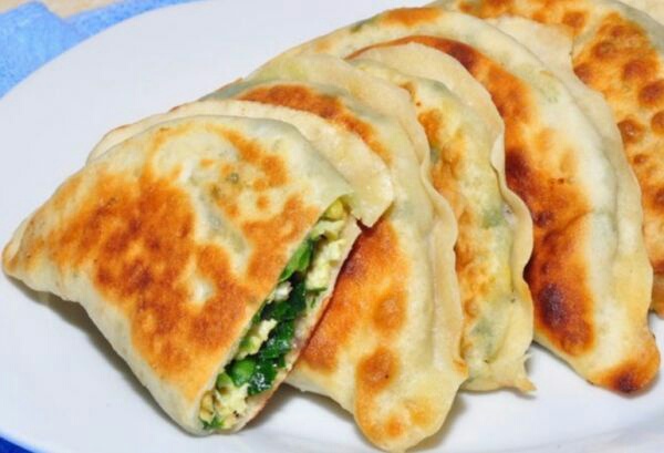 擀好后放入馅料包好,平底锅刷油,放入韭菜盒子,小火煎到两面金黄,就可以取出食用了。