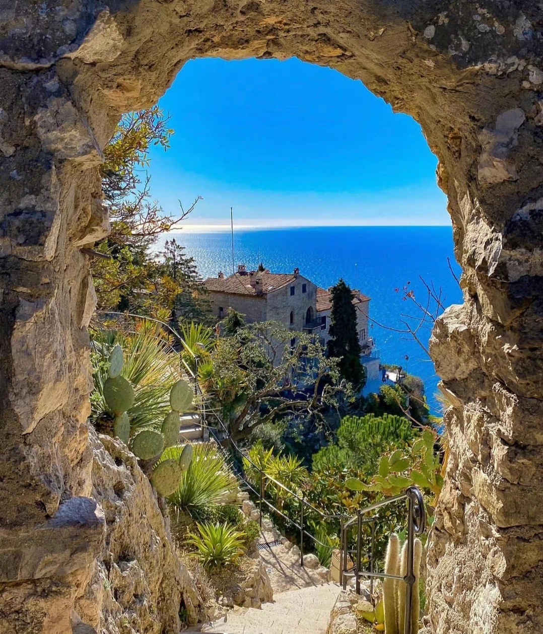 法国 Eze Village 埃兹小镇是一座美丽的中世纪古镇 一砖一瓦都散发出浓浓的历史感 这里独占山头高地 坐拥360°的地中海美景 海与山相互辉映 充满度假风情
