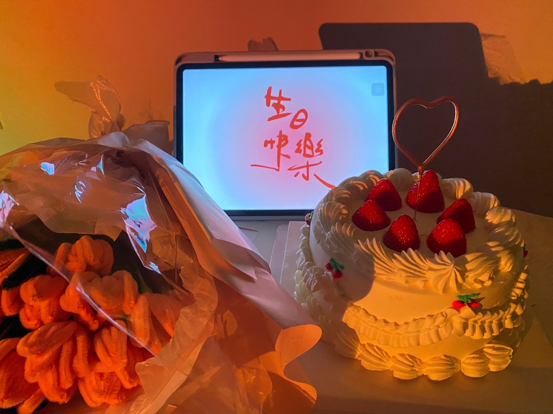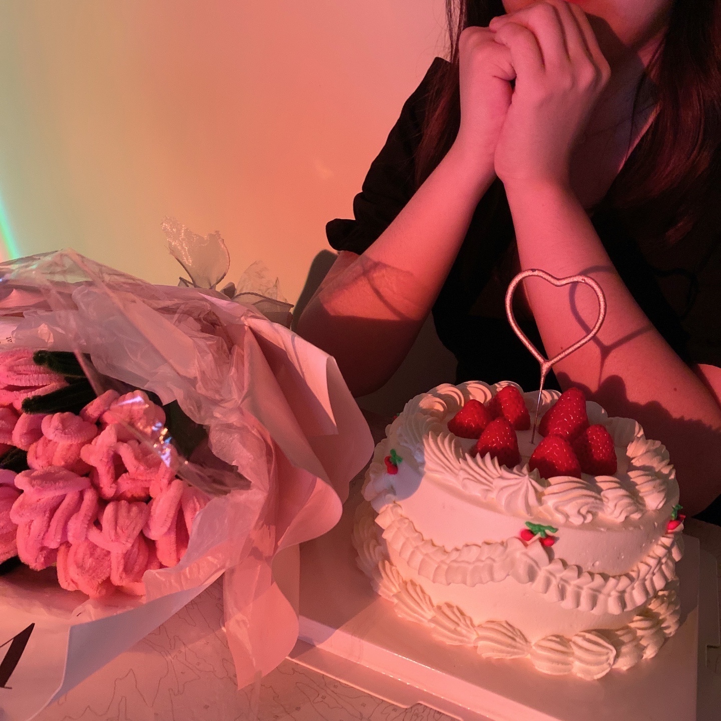 花、蛋糕和小道具增加氛围感