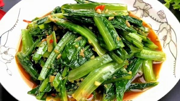 把芦笋叶炒软,把炒好的酱汁加进来,大火翻炒5678下关火出锅,装入盘中,就可以美美的享用了。
