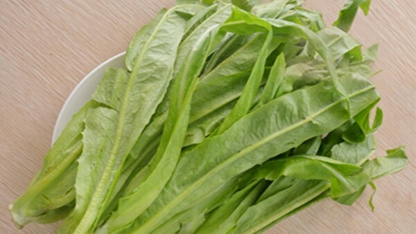 准备一把莴笋叶,用流动清水把芦笋叶清洗干净,洗净控水捞出,沥干水分,把控干水分的芦笋叶放在案板上,切成小段,切好后装入盘中。