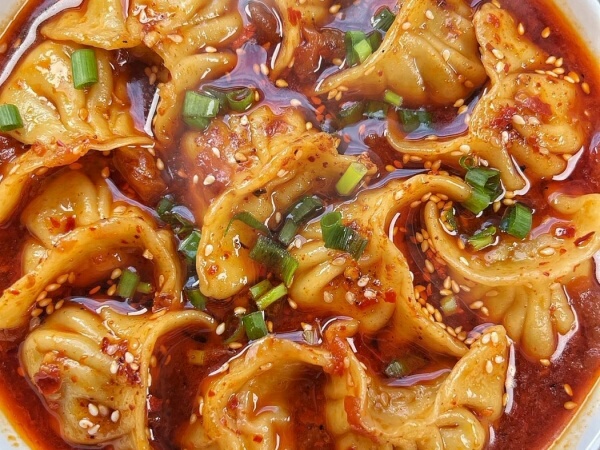 3、水开后,放入水饺煮,煮至水饺浮起来,就可以倒入提前准备好的酸汤酱汁,继续煮五分钟左右即可出锅,撒上葱花点缀即可开吃。