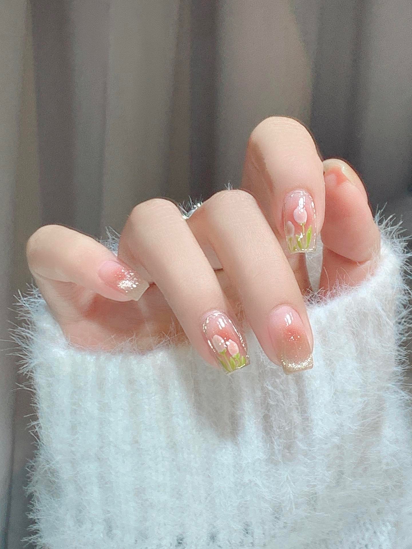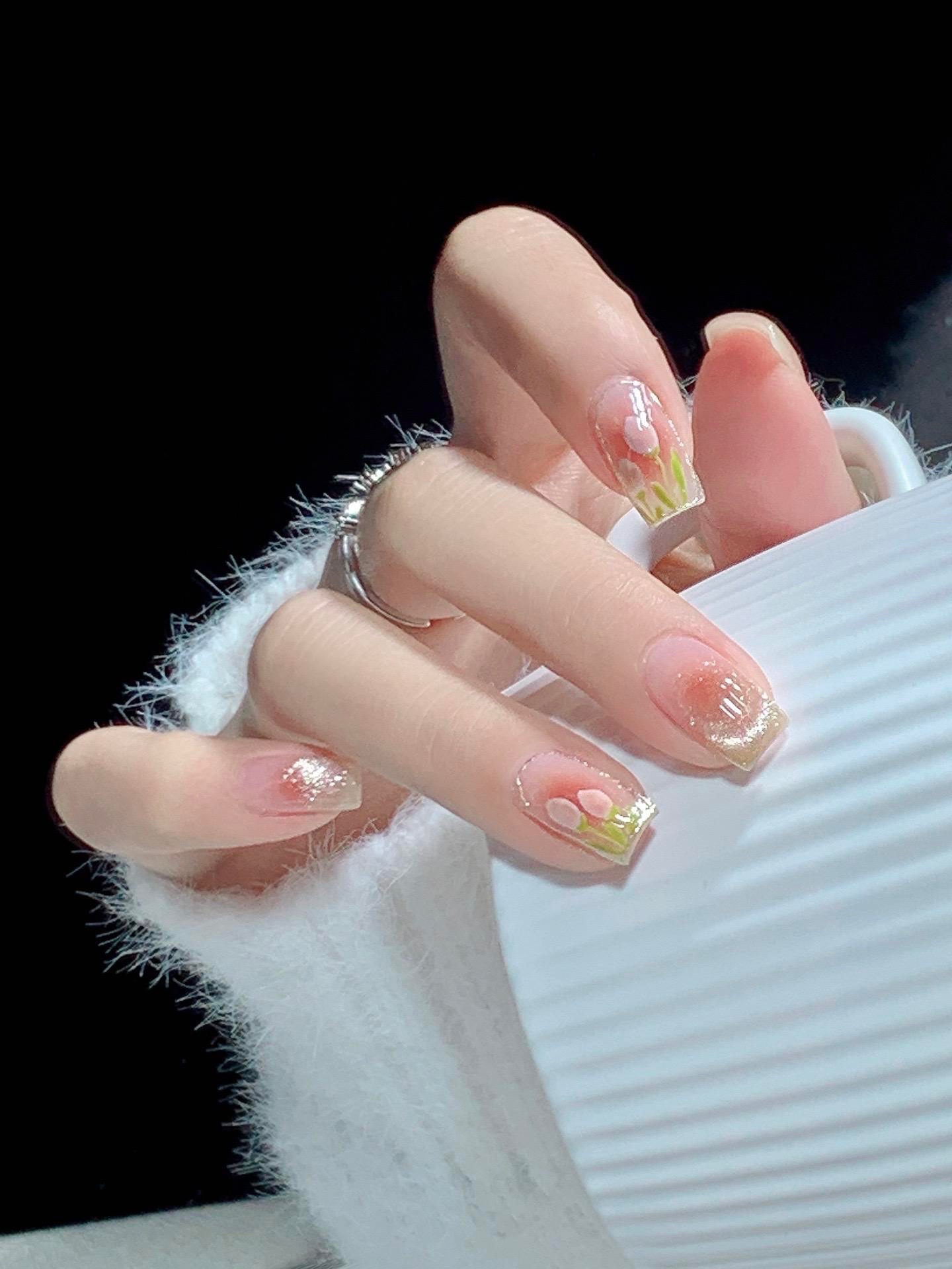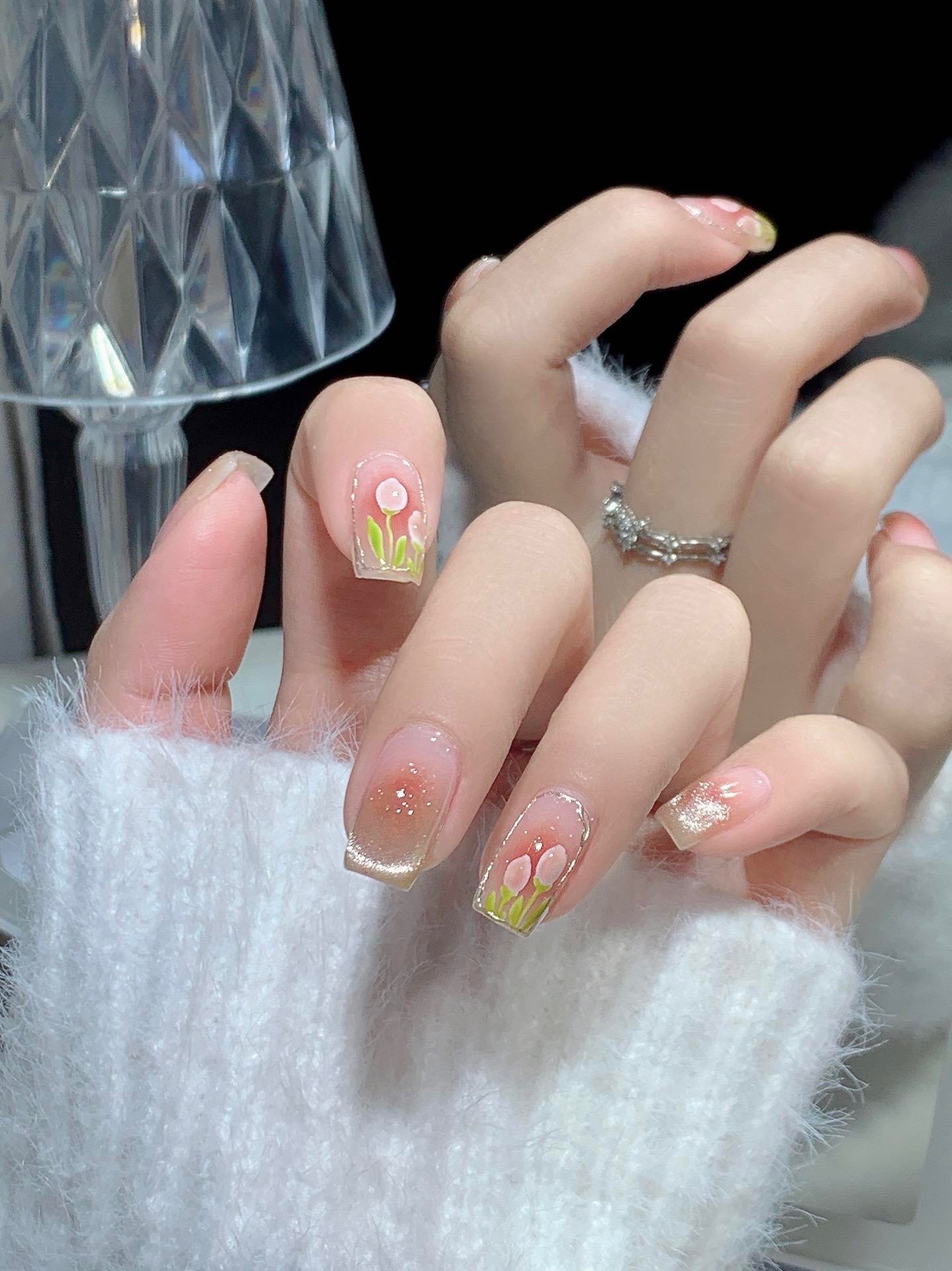 郁金香法式猫眼美甲,温柔又显白超好看的美甲#美甲